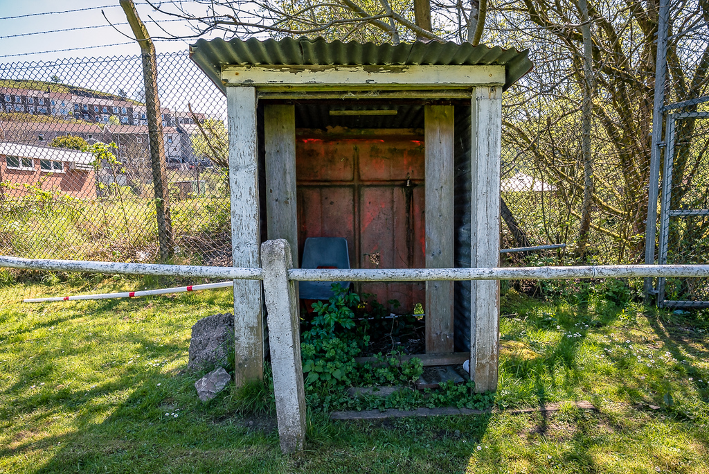 Раздевалки находятся в белом домике на этой насыпи, отремонтированном в рамках программы «Общественная плата», когда работа выполняется правонарушителями в качестве части их наказания.