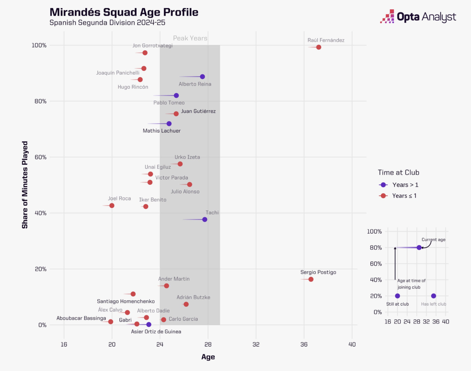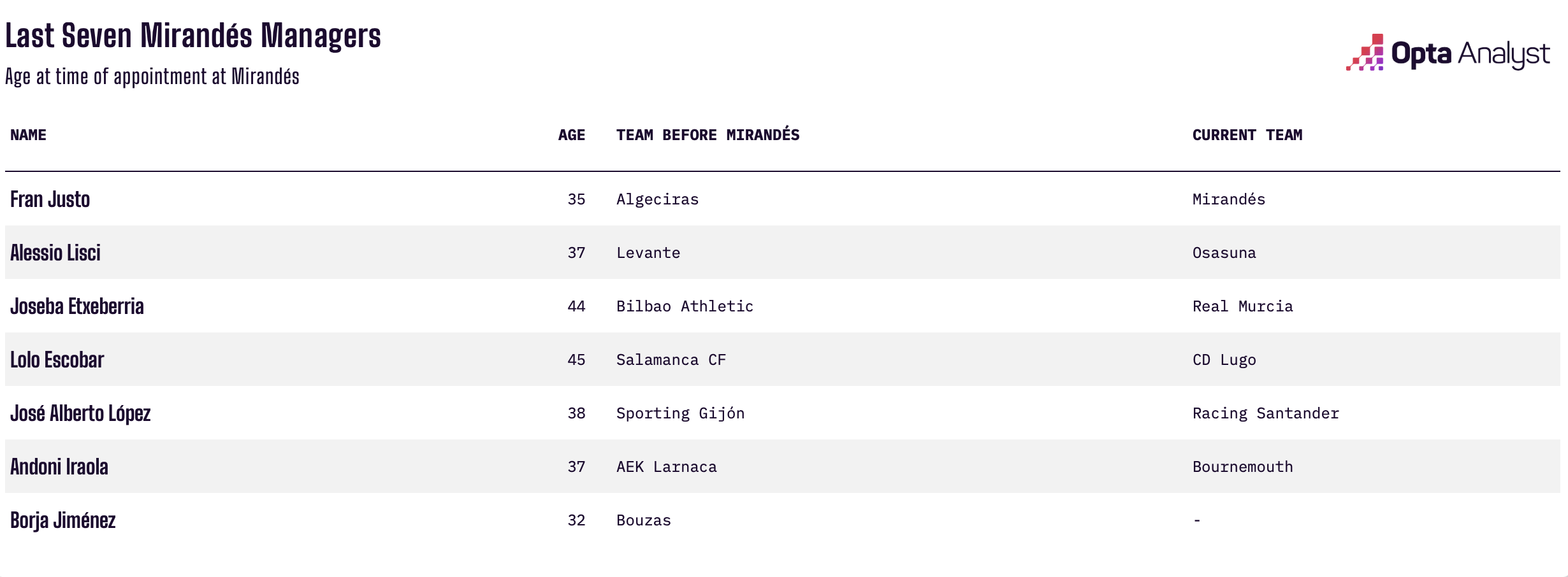 Главный архитектор этой модели — спортивный директор Альфредо Мерино, человек с редкой репутацией: в прошлом он возглавлял молодёжный скаутинг «Реала», потом «Сельты», прошёл через множество региональных клубов, прежде чем получить свободу действия в «Мирандесе».