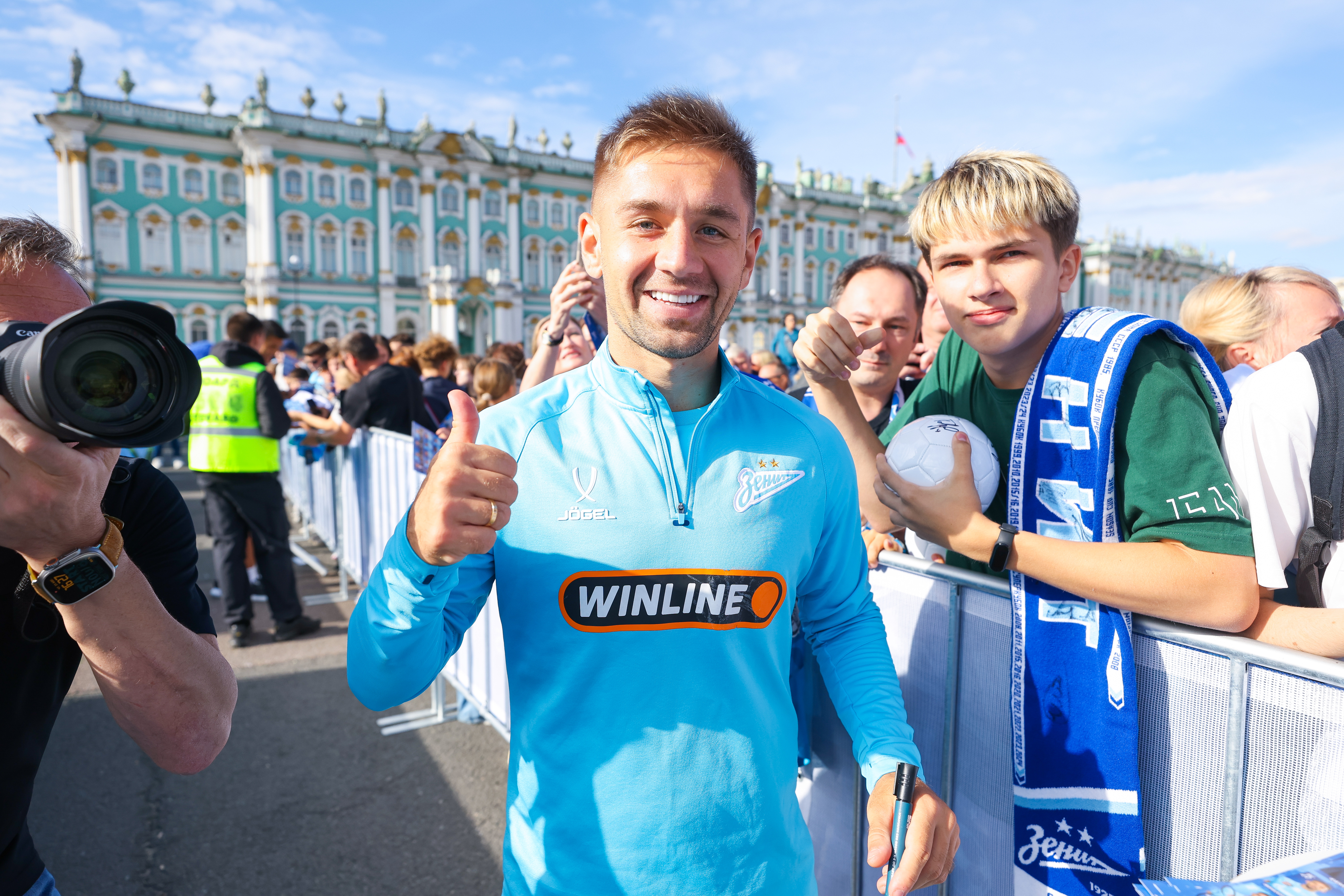 Ну а крики победителей мини-турнира было прекрасно слышно на всей Дворцовой и без микрофона. В том числе, когда они в шутку «отшивали» Барриоса, пытавшегося «примазаться» к традиционной в таких случаях и на обычной тренировке фото-сессии триумфаторов. А вот другая фото- она же автограф сессия, которая началась сразу после окончания самой открытой тренировки, получилась самой масштабной. В истории «Зенита» точно. Или вообще какого-либо российского клуба? Ведь в ней приняли участие сразу все игроки основного состава «сине-бело-голубых».