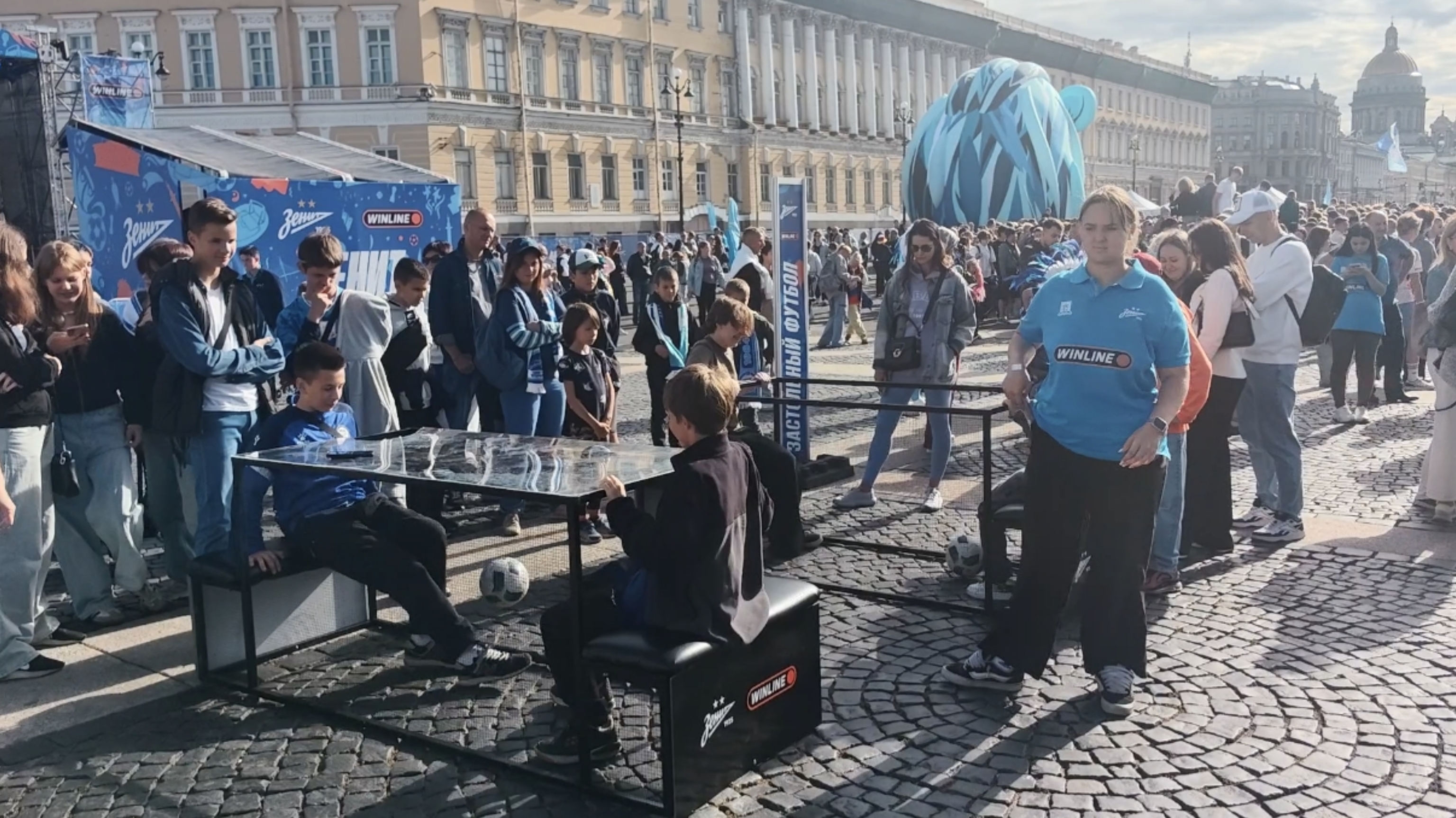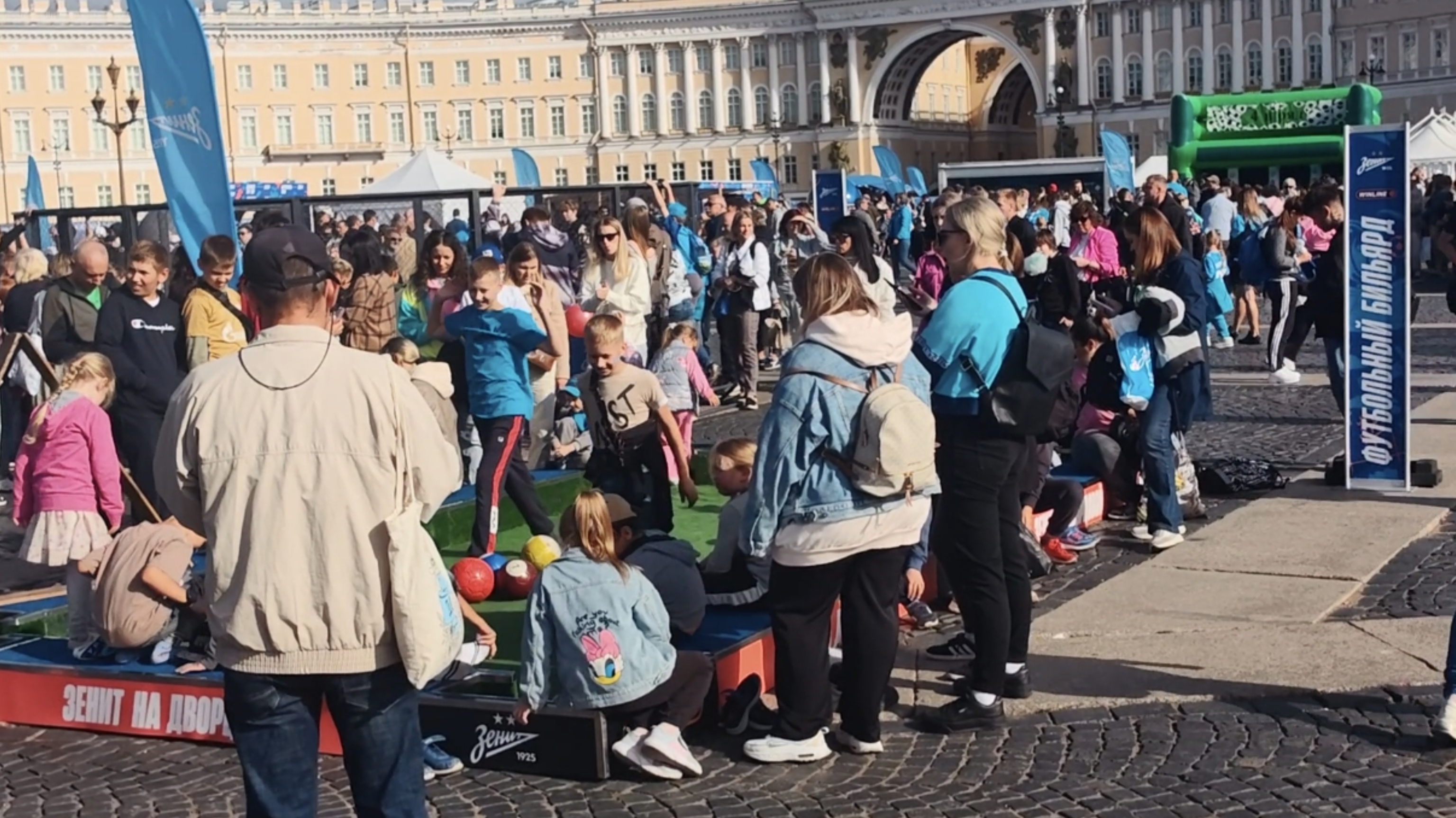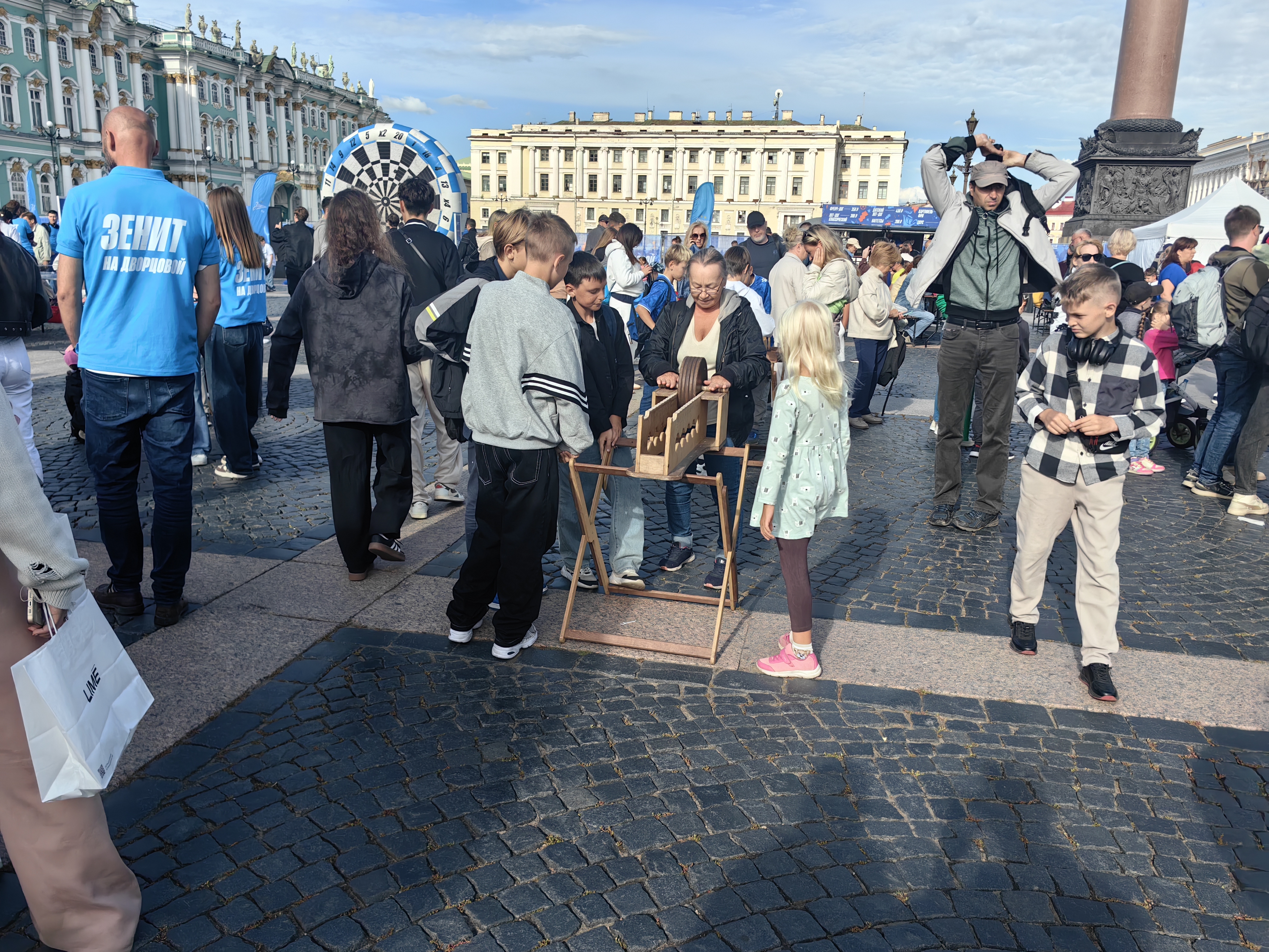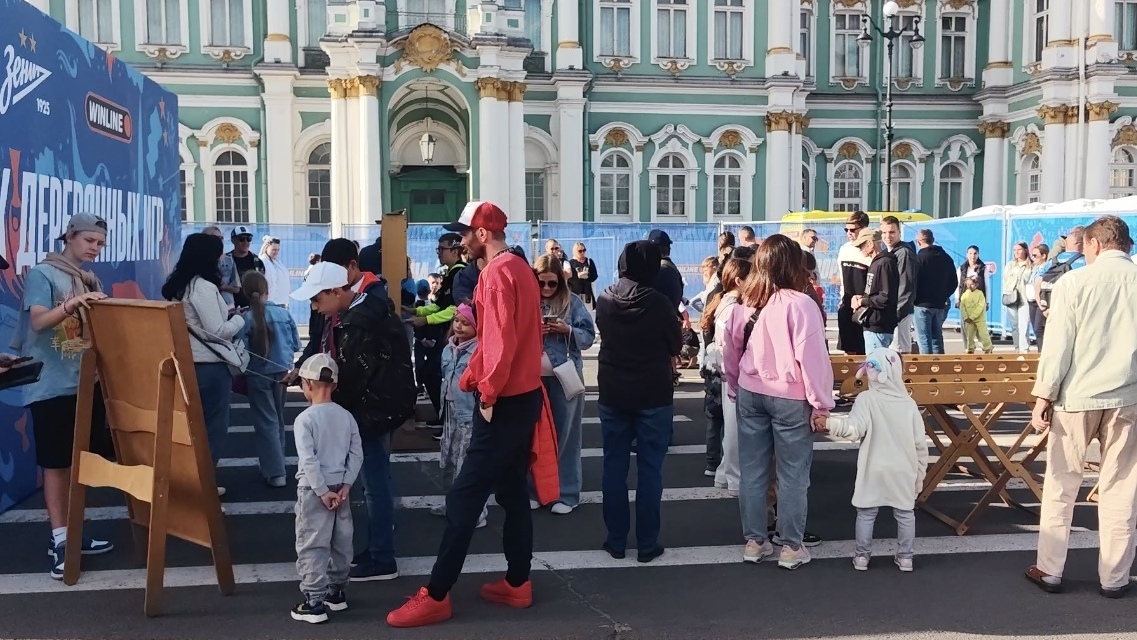 На Дворцовой также можно было испытать свою силу на футбольных аттракционах, поиграть в настольные теннис, пофотографироваться, пройтись по «Парку деревянных игр», нанести себе на лицо аквагрим и многое другое.