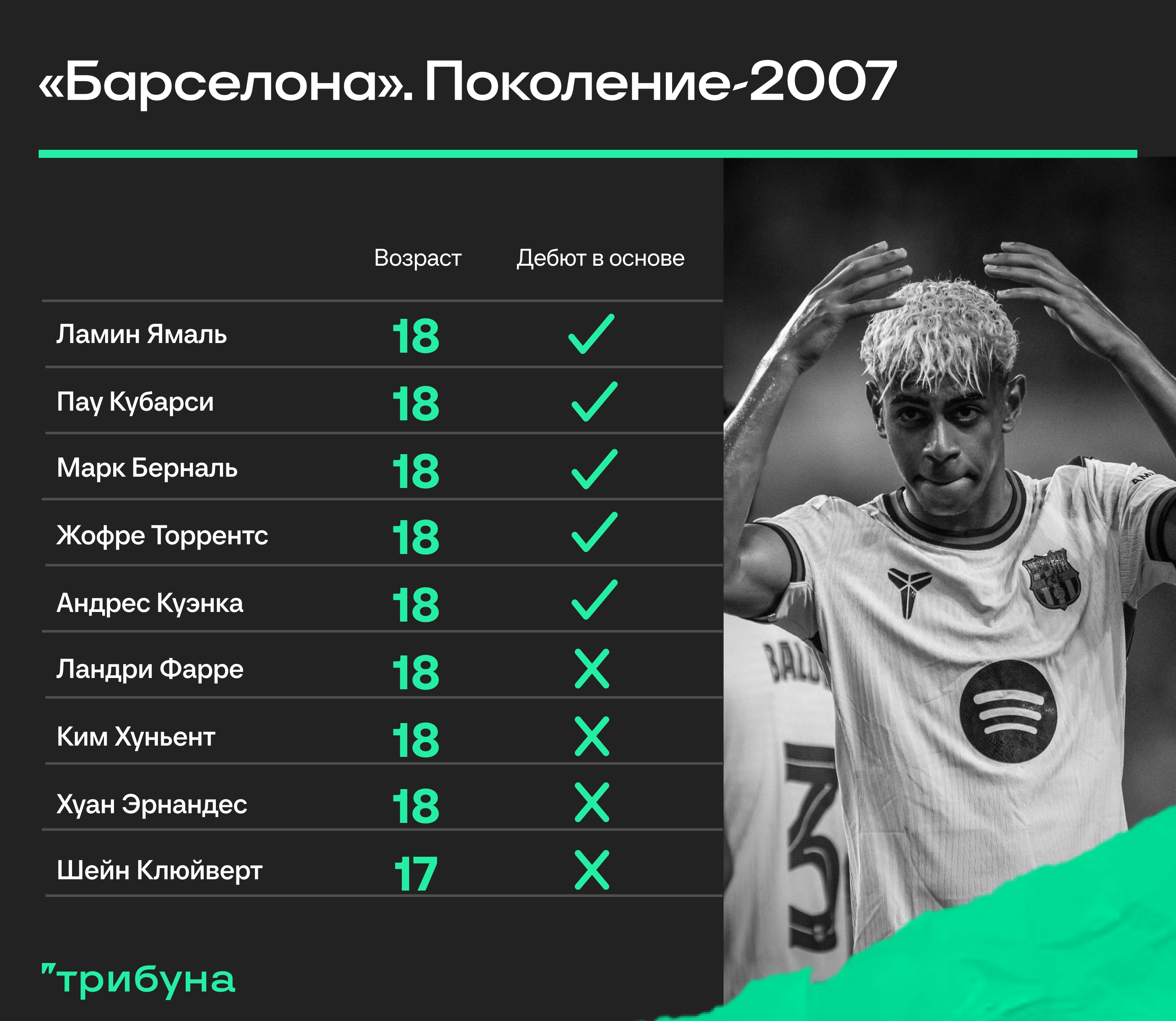Конечно, возрастное ограничение не запрещает молодым талантам быстрее двигаться из группы в группу благодаря своей игре. Ямаль в 15 лет вовсю выступал за «Барсу Атлетик» и дебютировал в Ла Лиге, Кубарси в 16 начинал сезон в резерве основным защитником – примеров можно найти очень много.
