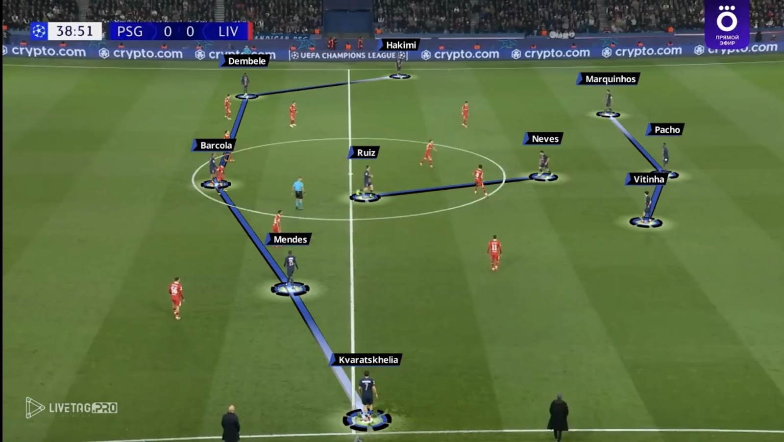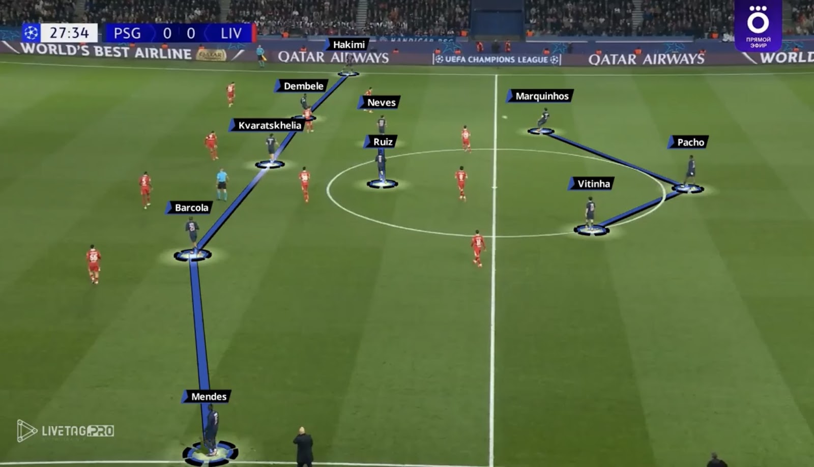 Вот, например, билдап ПСЖ в матче Лиги чемпионов прошедшего сезона против «Ливерпуля»: