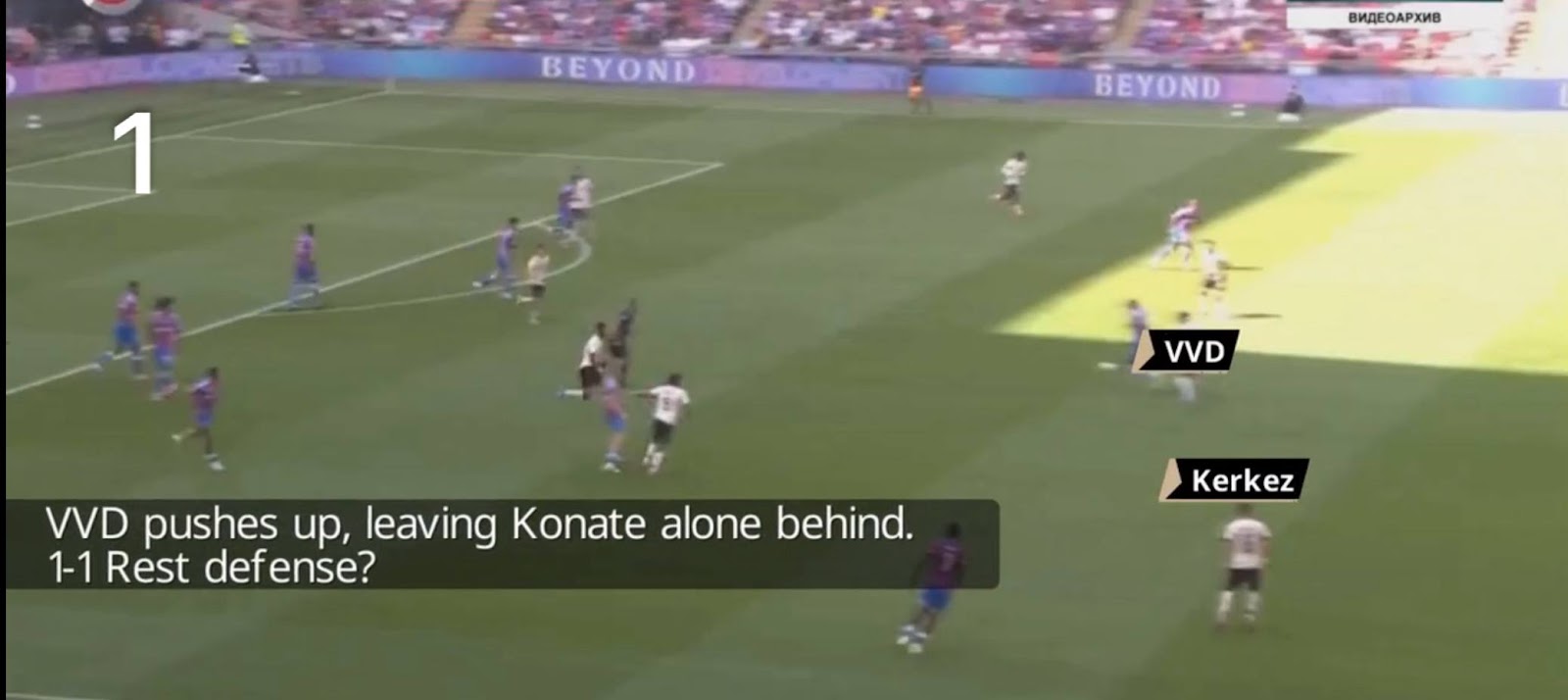 Сделав лишь 1 передачу на своего партнера, игрок «Пэлас» создал преимущество для своей команды, отрезав еще и Доминика. Это привело к тому, что атакующих игроков лондонцев в контратаке было столько же, сколько защитников «Ливерпуля», что практически гарантирует опасность.