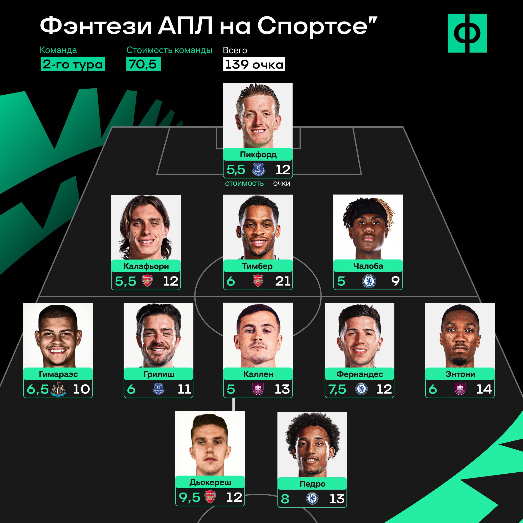 Гол, два ассиста, три удара и два созданных момента – большой контраст с нулевым первым туром. Календарь благоприятный: «Фулхэм», «Брентфорд», «Манчестер Юнайтед», «Брайтон».