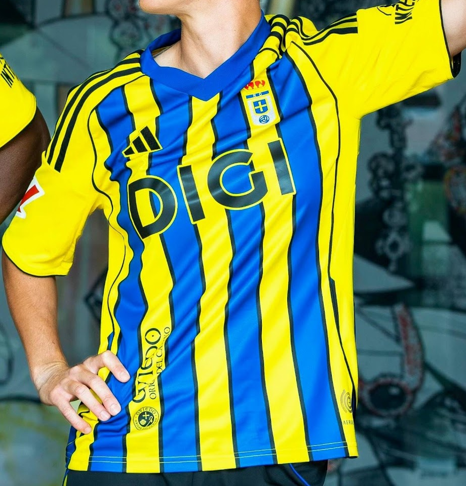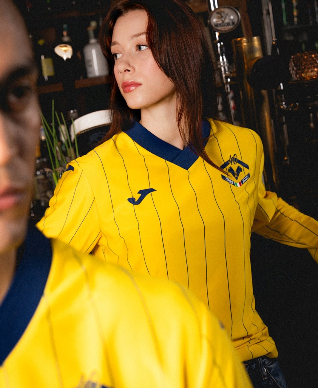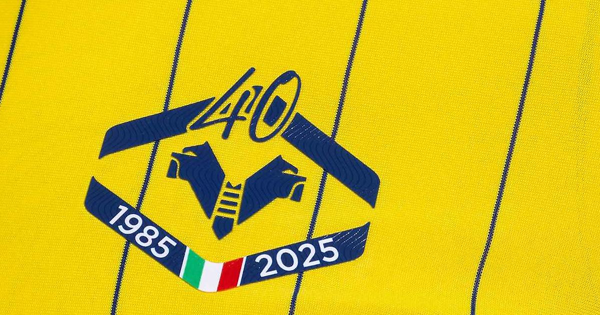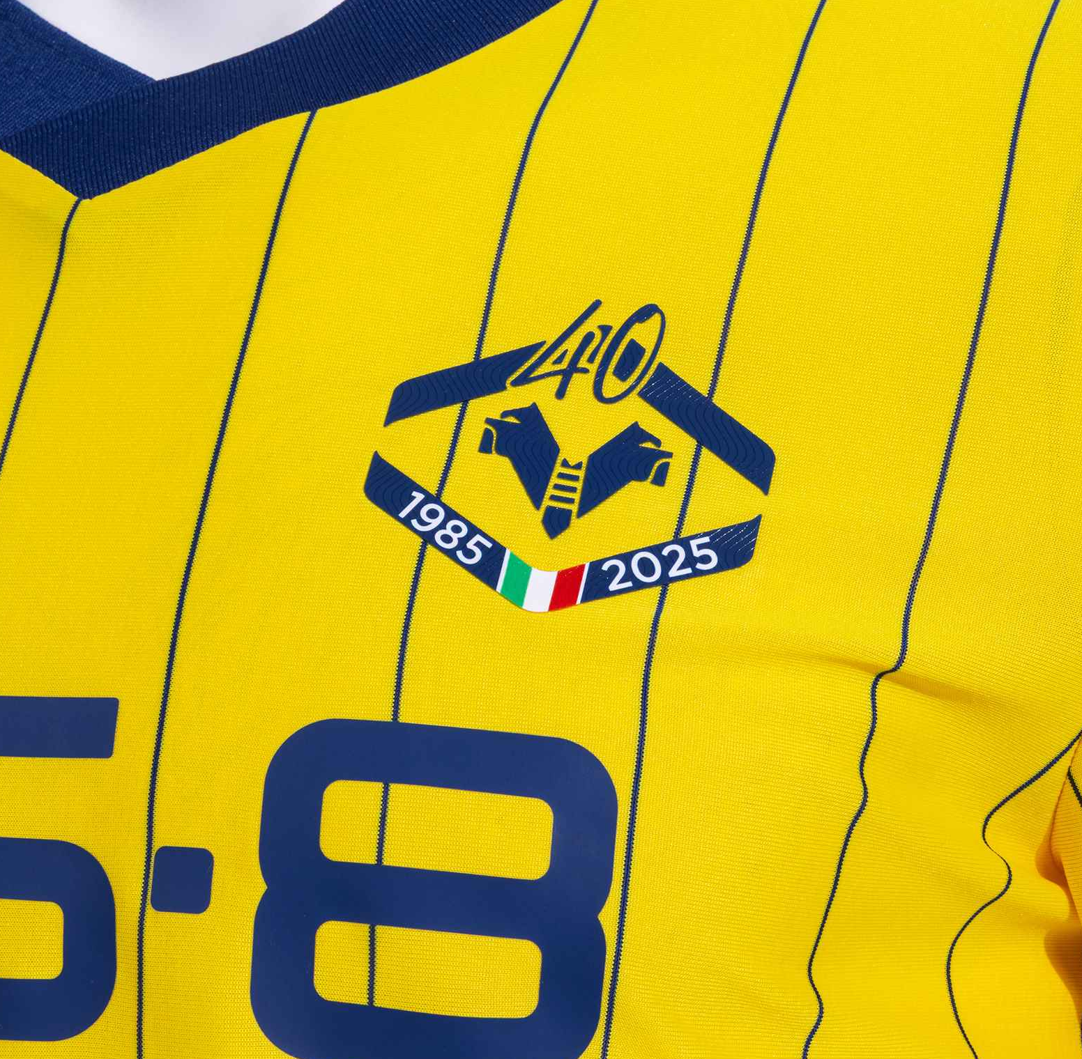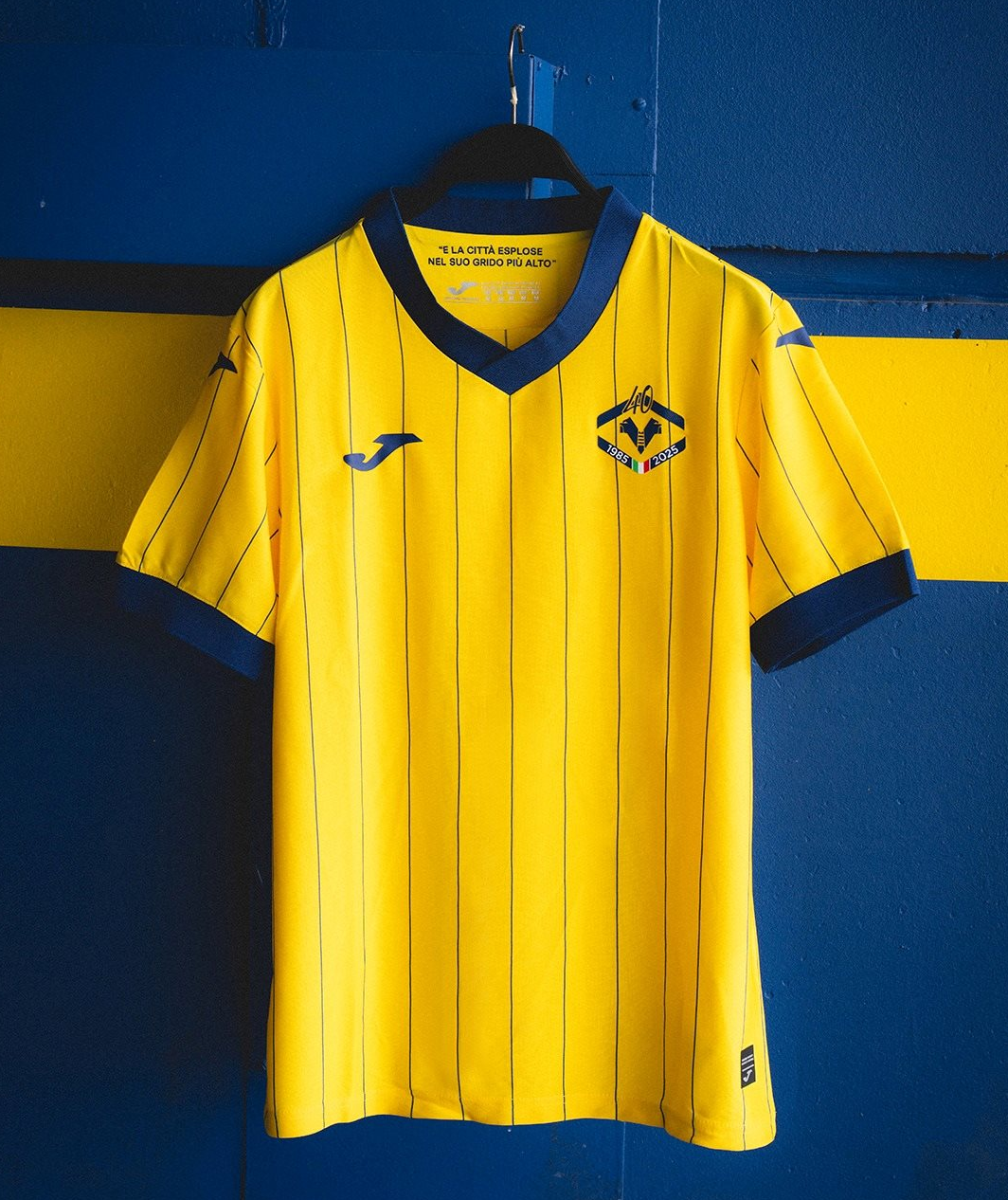Основа юбилейной футболки — желтая, с едва заметными вертикальными синими полосками, которые пересекаются со специальным гербом на груди, дополненным числом «40» над ним в честь годовщины и надписью «1985–2025», перемежаемой итальянским триколором.