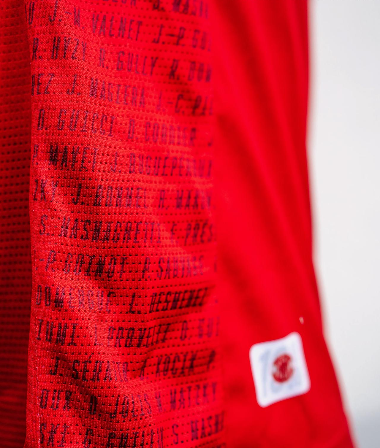 На боковых панелях – дань уважения легендарной команде 1960-х годов. В сезонах 1964/65 и 1965/66 «Валансьен» занял третье место в Дивизионе 1, что стало лучшим результатом в его истории. Спустя шестьдесят лет имена всех героев тех лет выгравированы на футболке.