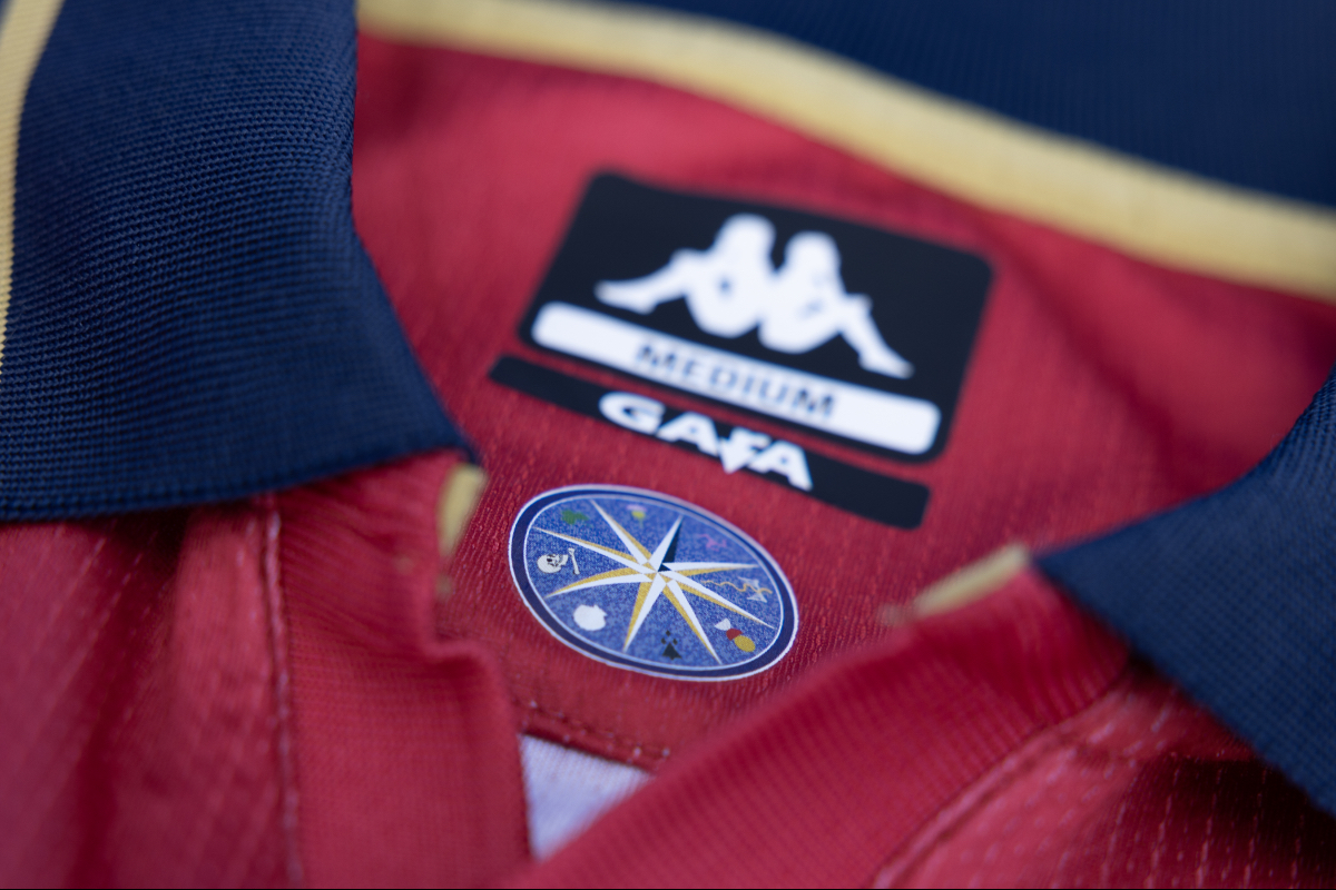Футболка сочетает в себе насыщенный красный цвет, темно-синие рукава и золотую отделку, отдавая дань уважения золотому веку клуба и его достижениям в европейских соревнованиях. Герб и логотипы Kappa выполнены в золотом цвете, а отложной воротник в стиле поло украшен темно-синими и золотыми полосками и украшен изящными деталями по всему изделию.