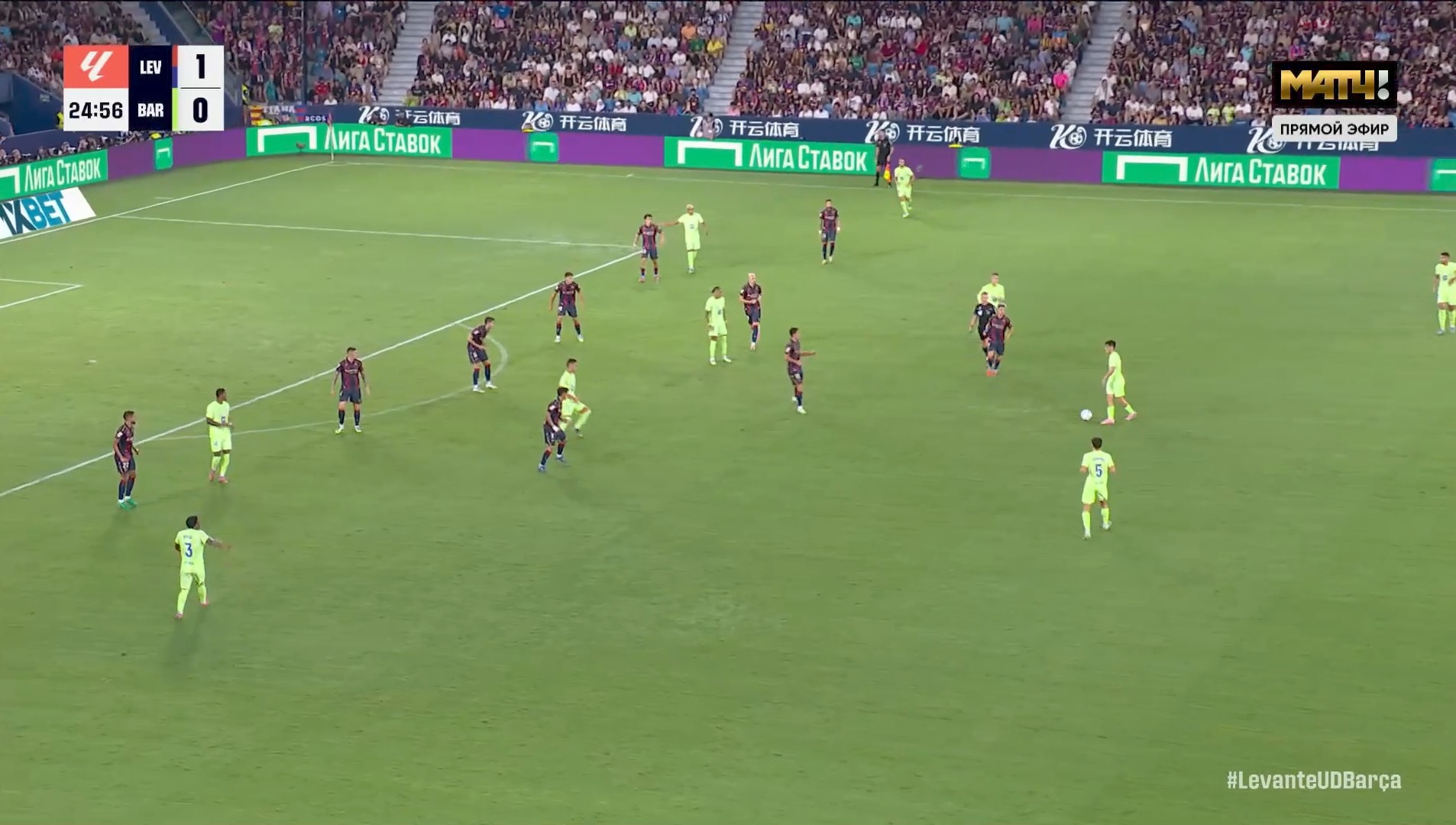 Араухо пока что не очень уверенно держит высокую линию и «Леванте» смог этим воспользоваться, хоть и попал в 6 офсайдов. Игра «Леванте» строилась на быстром выходе из-под прессинга и передачах за спины защитникам «Барселоны». Единственное, что осталось наладить «Барселоне» в высокой линии – это взаимодействие Араухо с Кубарси, потому что на данный момент они часто действуют по-разному и не понимают друг друга из-за чего возникают проблемы, а так Рональд уже более менее понял систему Флика. Ну и стоит отметить, что новый кипер «Барсы» Жоан Гарсия очень надёжен и в системе Флика, хотя это было сомнительно, ведь в «Эспаньоле» он был в команде с более оборонительной игрой, а не настолько атакующей, где нужно чувствовать когда нужно выходить из ворот и так далее.