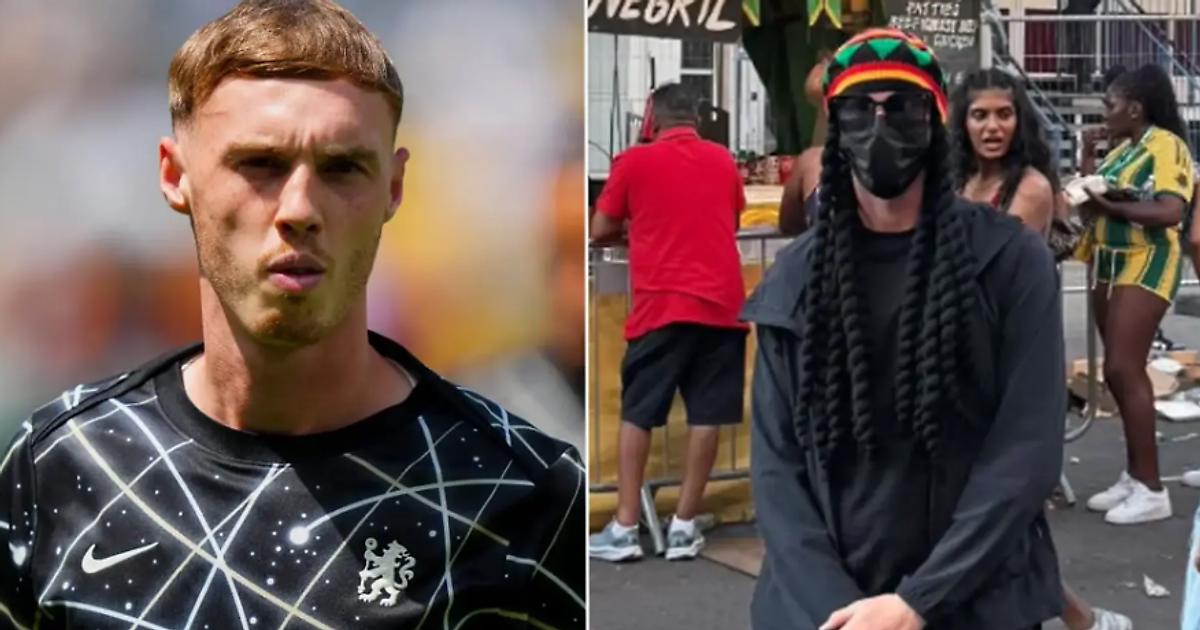 Звезда «Челси» Коул Палмер решил остаться незамеченным во время посещения карнавала в Ноттинг-Гилле, надев маску и вязаную шапку с дредами.