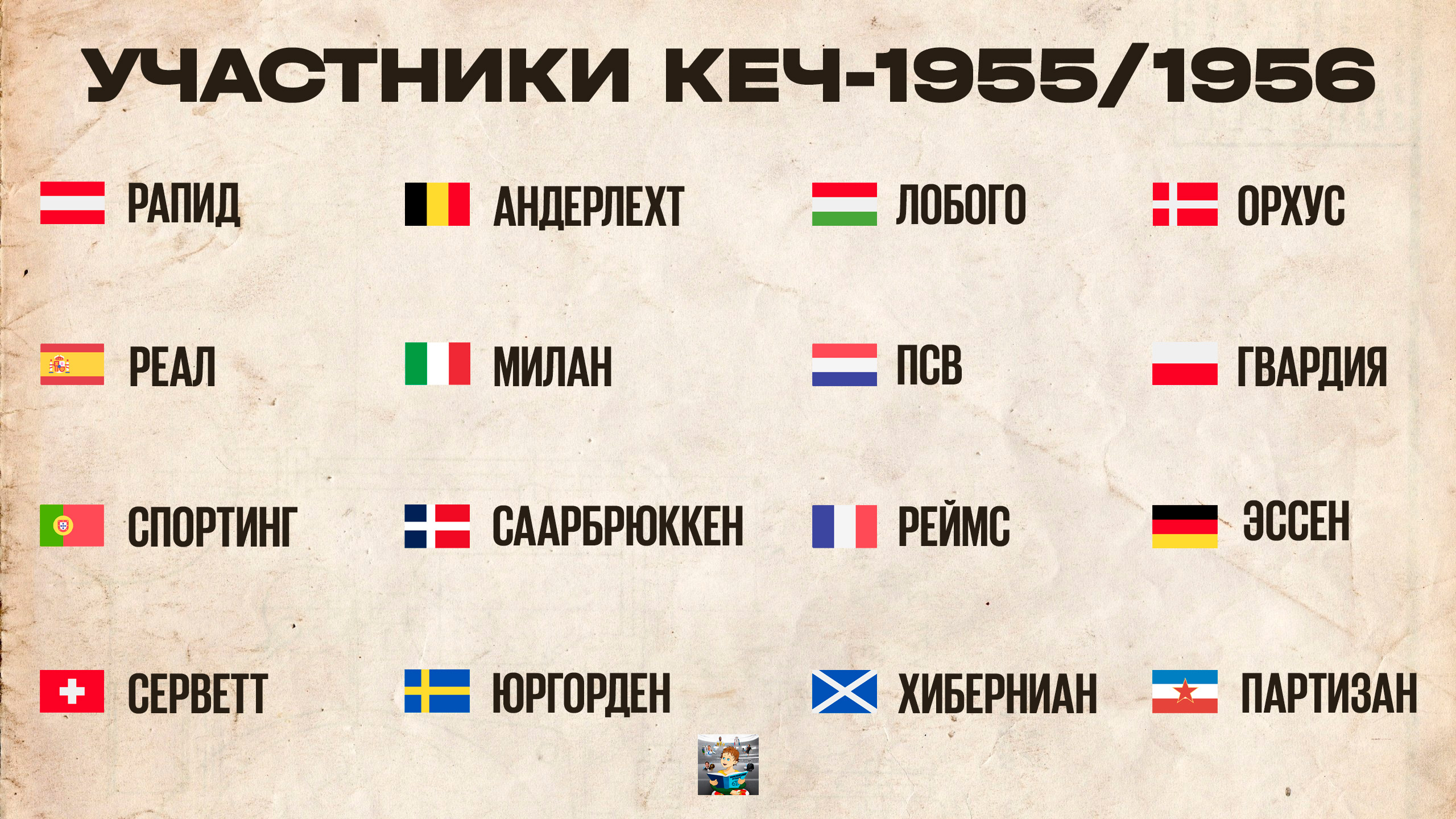 От автора: дорогие читатели, сегодня мы запускаем цикл постов о главном клубном турнире Старого Света. Начинаем с сезона-1955/56. Еще больше историй и видеообзор КЕЧ-1955/56 вы найдете у нас в Телеграм.