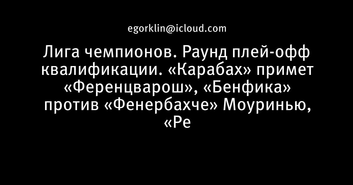 Лига чемпионов. Раунд плей-офф квалификации. «Карабах» примет «Ференцварош», «Бенфика» против «Фенербахче» Моуринью, «Ре