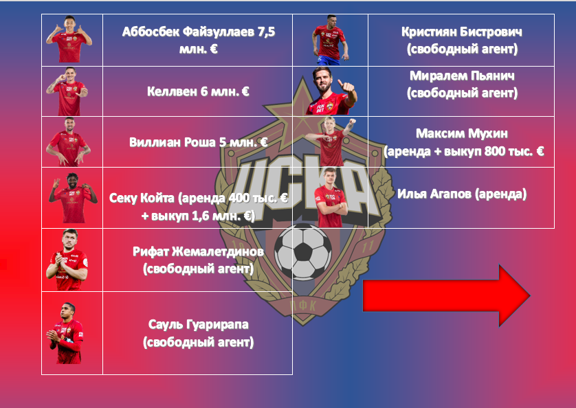 В итоге, анализируя уходы, можно сделать вывод, что клуб покинули в основном игроки ротации, не сильно важные для игры команды. Жалко терять Пьянича и Рошу, но ЦСКА заработал много денег, что должно помочь укрепить состав.
