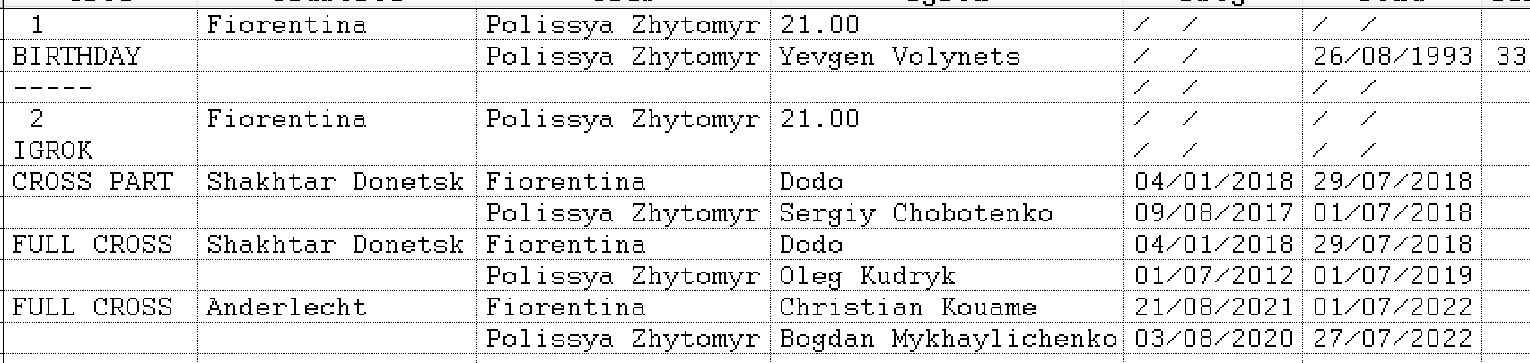 1. Об именинниках в текущих матчах(+\- 3 дня к дате матча)