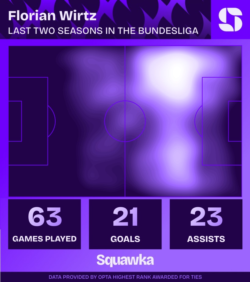 Более того, если рассматривать всех атакующих полузащитников, вингеров и форвардов в Премьер-лиге в этом сезоне, то Вирц занимает первое место по общему количеству касаний мяча в центральном коридоре (45) по всей длине поля. Это, пожалуй, единственная статистика, которая волнует Арне Слота в отношении него.