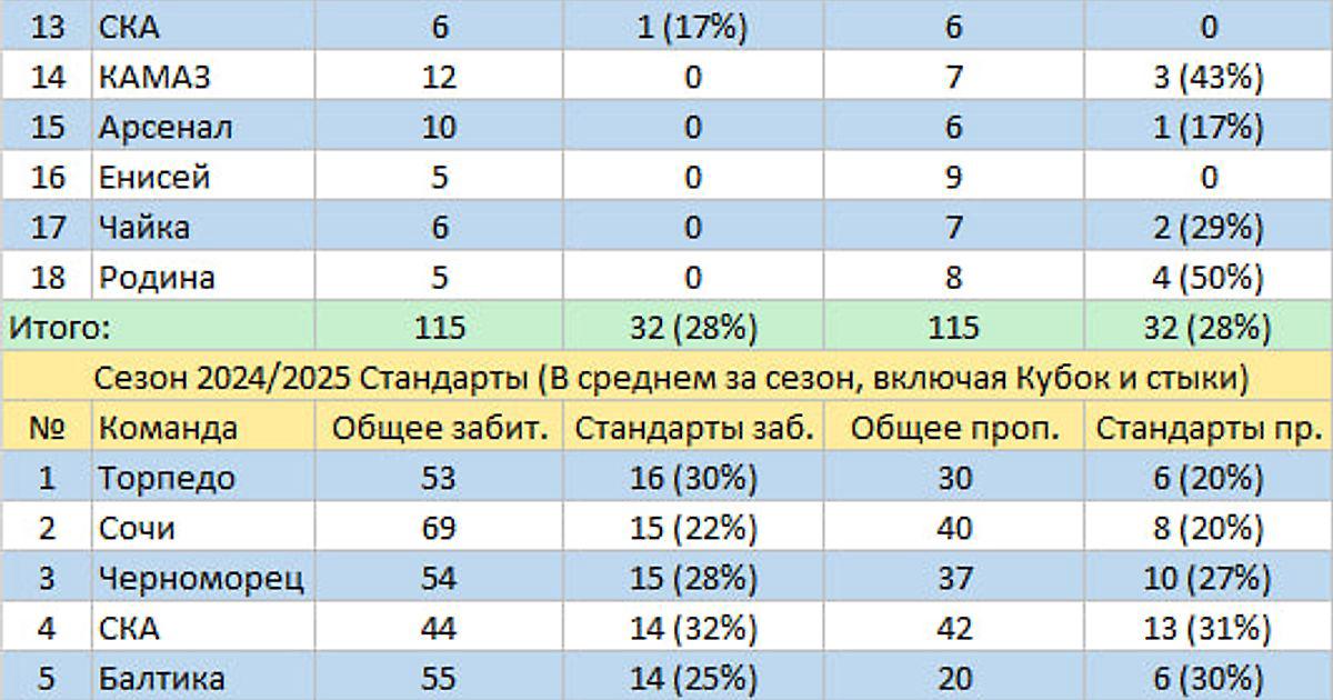 «А действительно», — озадачился я. «А сколько же всё-таки в нашей Лиге забивают со стандартов?» Ну и дал себе труд посчитать.