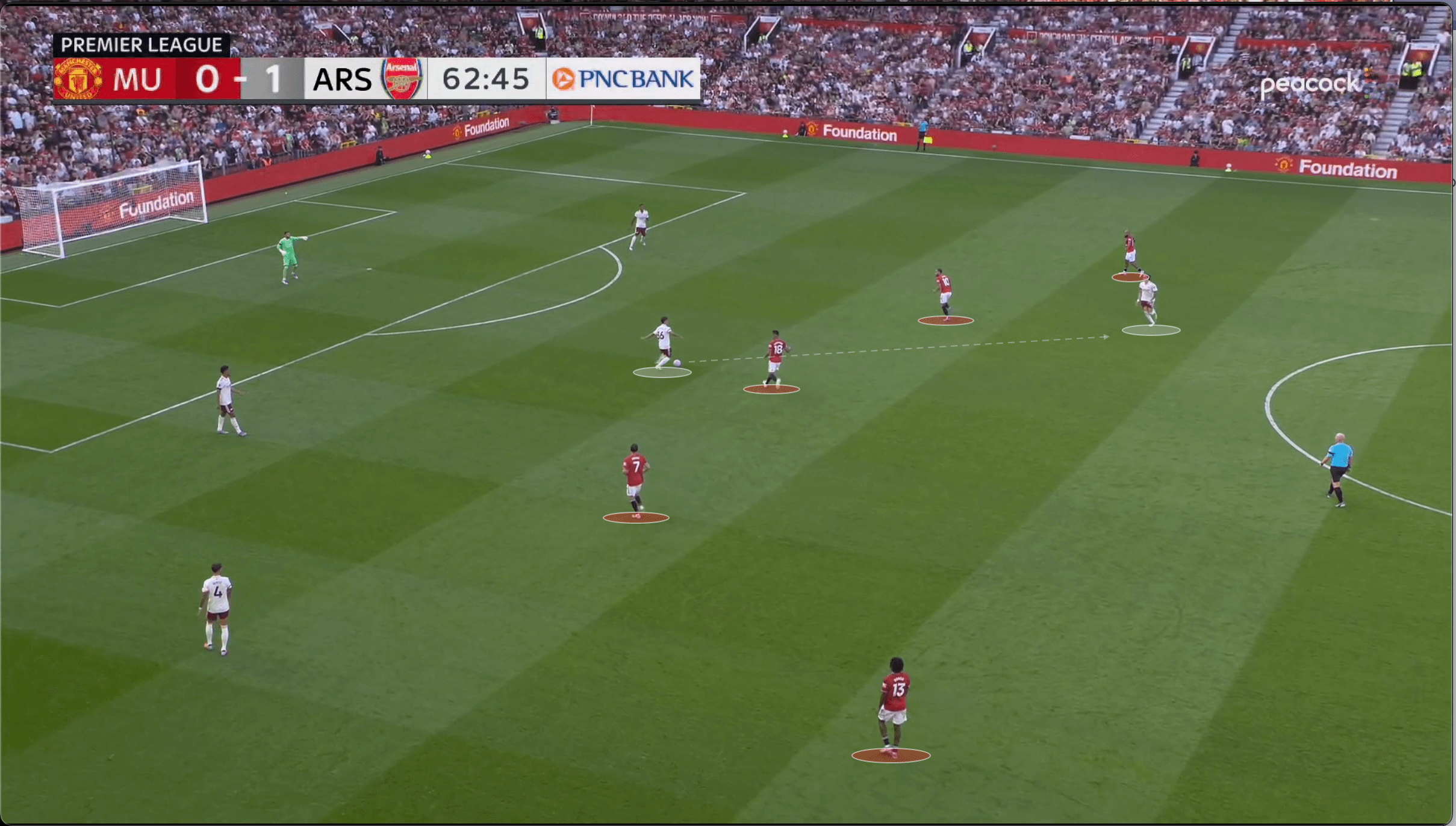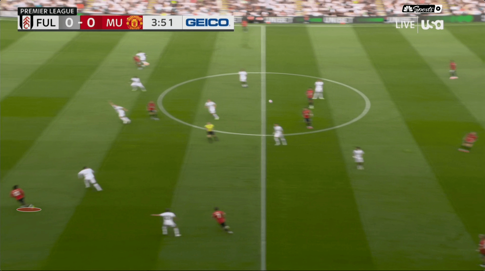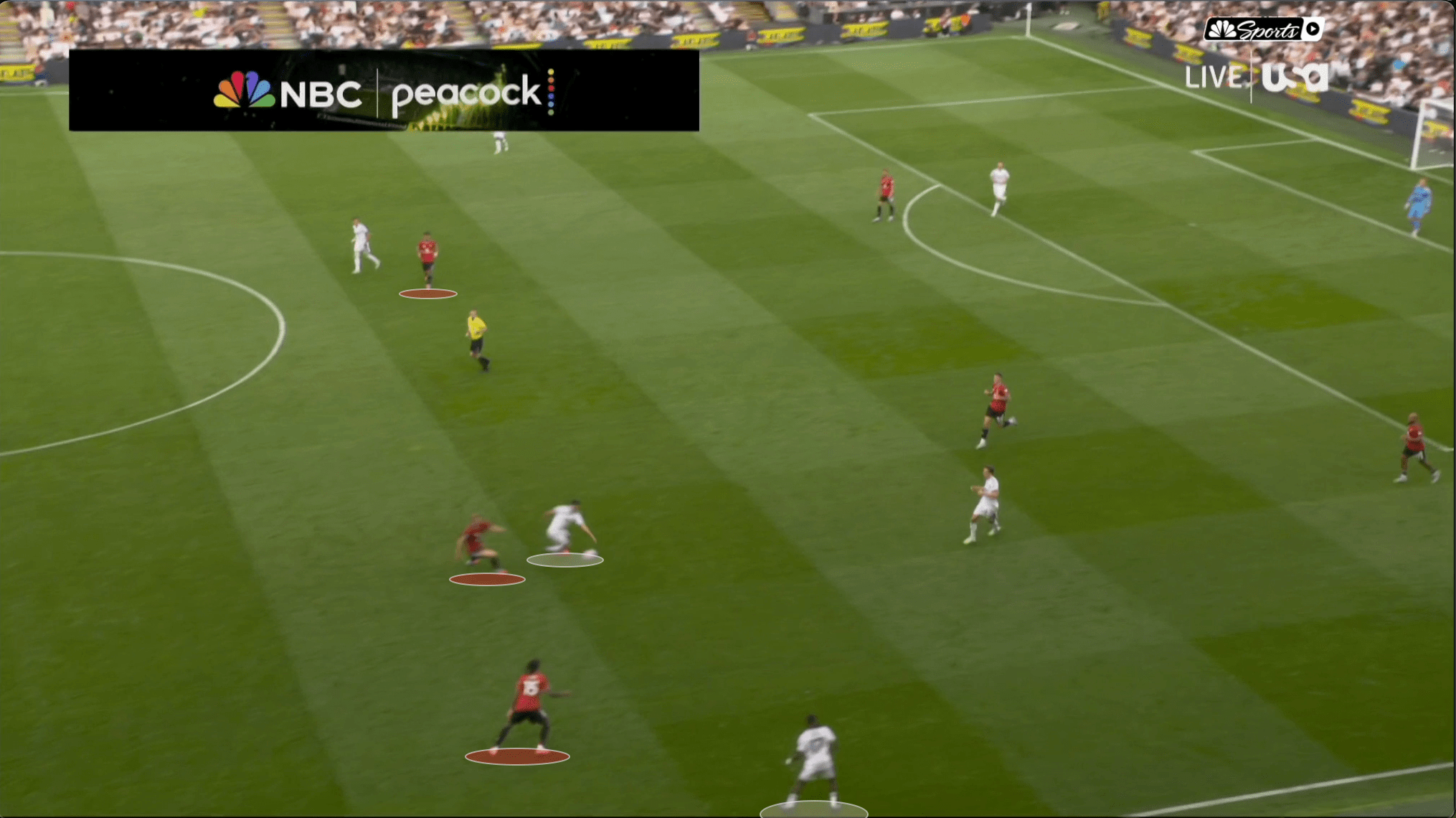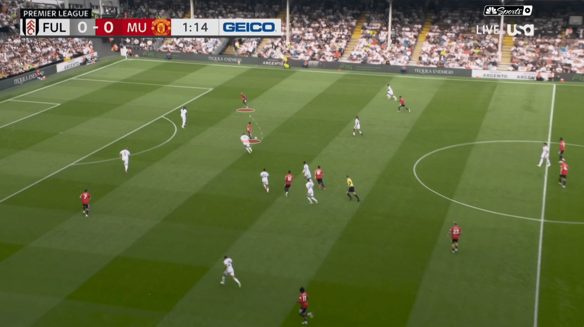 Уже на 3-й минуте Лени Йоро переводит мяч на Доргу, который оказывается самым выдвинутым игроком «Юнайтед».