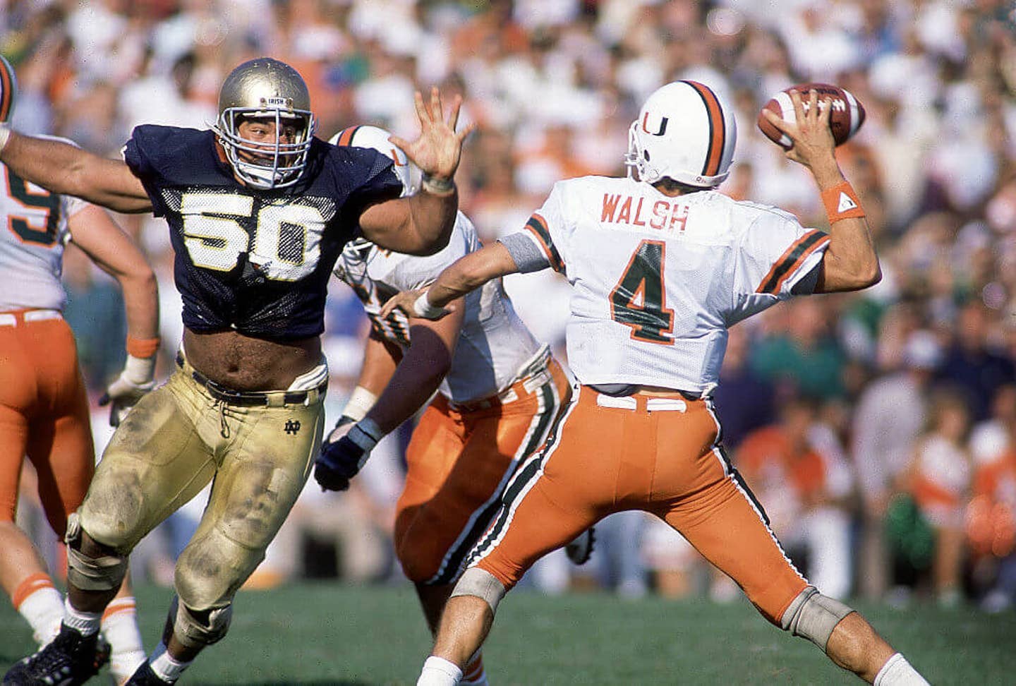 Сейчас не так очевидно, но Нотр Дам – Майами это классика. В конце 80-х это были матчи топ-10. Команды играли по сути каждый год с 1970 по 1990. «Католики и Осужденные». Таковы были футболки, продаваемые, в 89, когда Нотр Дам нанес поражение Майами с первого места в рейтинге. Но потом команды перестали играть, почему? Спортивный директор Нотр Дама, Дик Розенталь сказал тогда (в 1990 году), что «это противостояние несколько более острое, чем тому следует быть», а также что Нотр Дам хочет сыграть с новыми соперниками: «многие фанаты слишком страстно подходят к этой игре, что не очень здоровое явление. Возможно дать этому противостоянию несколько остыть на какое-то время не такая плохая идея». И вот команды вновь сойдутся.