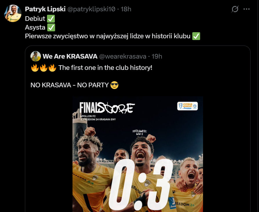 - Играет за «Красаву» с лета 2023-го, со второго года существования клуба на Кипре. Матч с АПОЭЛом стал для него 50-м за «Красаву». Уже один из любимчиков трибун и начинающая икона клуба.