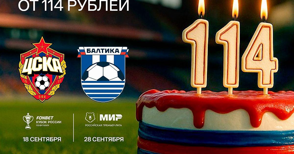 В честь дня рождения ПФК ЦСКА стоимость билетов на эти матчи начинается от 114 рублей! Данная цена актуальна для секторов 507, 508, 511 и 512