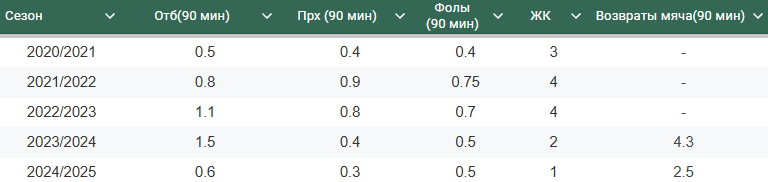 *Статистика по возвратам мяча ведется с сезона 2023/2024