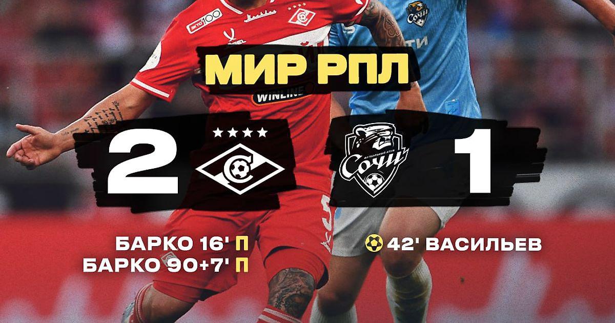 «Спартак» в тяжелейшей борьбе вырвал победу у «Сочи» - 2:1.