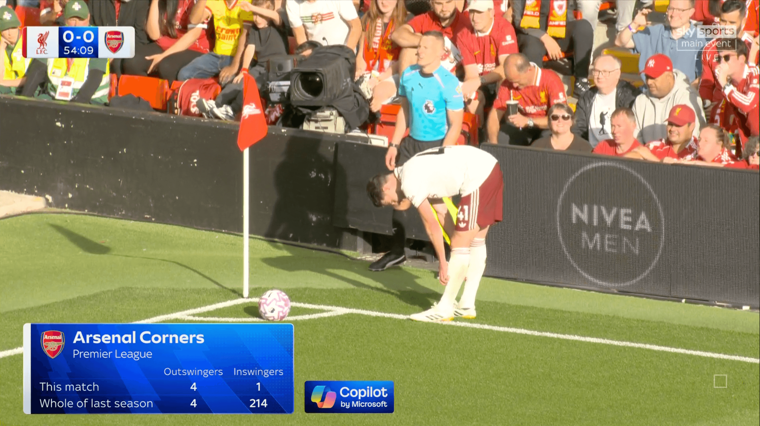 ● Нехватка левшей – Букайо Сака и Мартина Эдегора (появился, но только на финальном этапе). С обоих флангов приходилось подавать правше Райсу. Следствие – пришлось намного чаще задействовать подачи от ворот. Вот идеальная подсказка от Sky Sports по ходу матча. За весь прошлый сезон «Арсенал» сделал 4 подачи от ворот. Сегодня столько же за час игры.