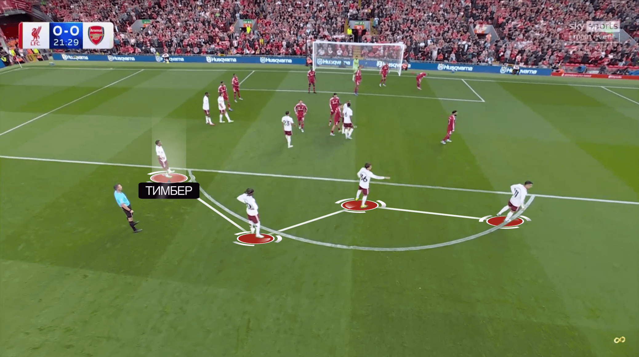 Возможно, Тимбера отодвинули из-за страха перед контратаками «Ливерпуля». Эта команда при любом тренере специализируется на быстрой доставке мяча после угловых – благодаря реакции Алиссона и скорости Салаха. Кажется, «Арсенал» держал в уме и не рисковал.