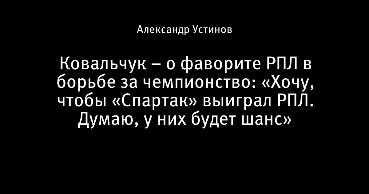 Ковальчук – о фаворите РПЛ в борьбе за чемпионство: «Хочу, чтобы «Спартак» выиграл РПЛ. Думаю, у них будет шанс»