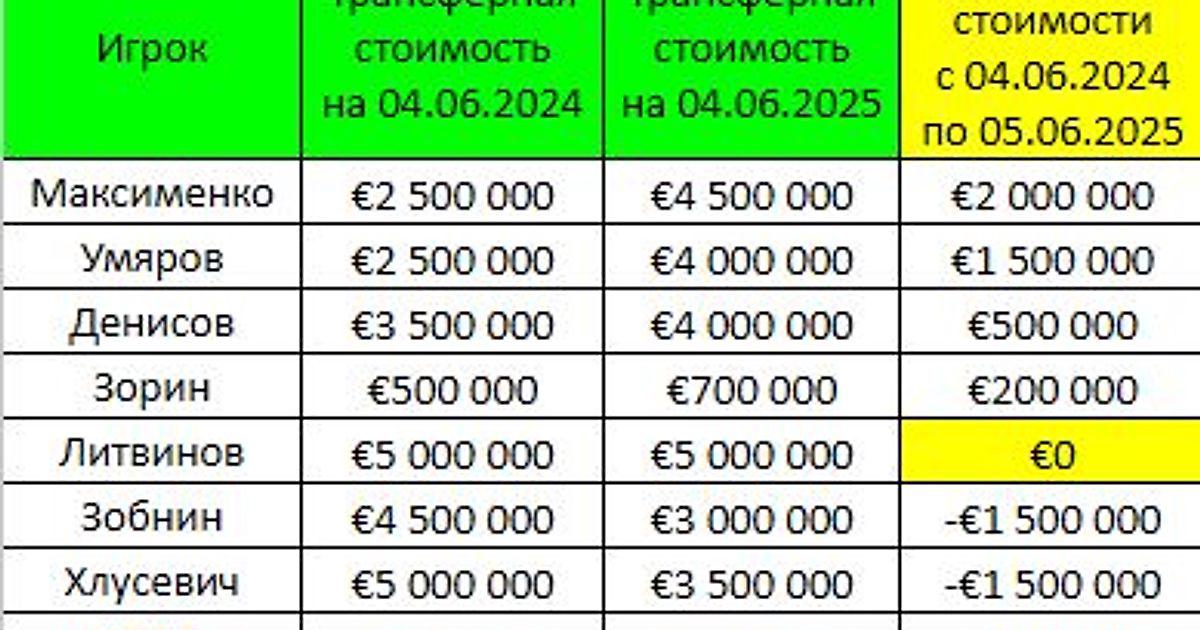 Вашему вниманию предлагается срез статистики по динамике трансфертной стоимости игроков ФК Спартак Москва с российским паспортом из основной обоймы команды за первый год работы под руководством Деяна Станковича (по данным Transfermarkt).