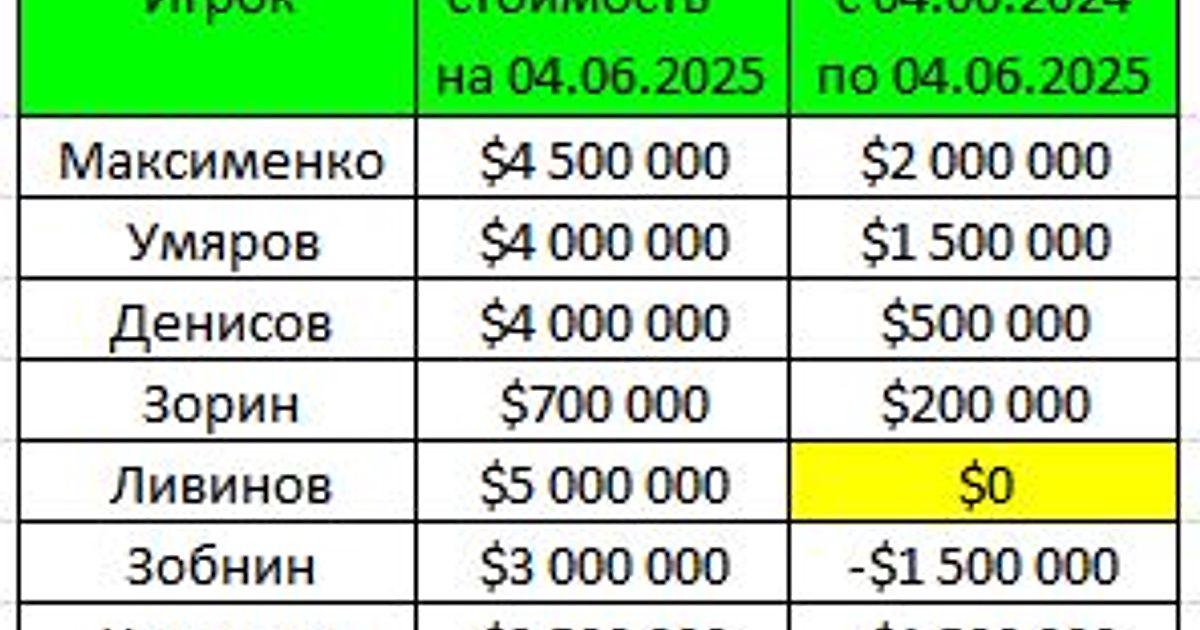 Наилучшую динамику за этот период (с 04.06.2024 по 04.06.2025) показал Александр Максименко (+ 2 млн.$).