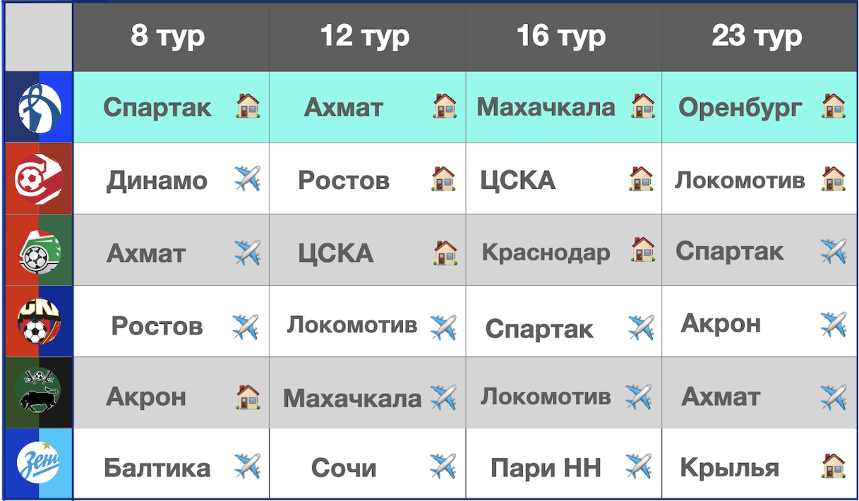 А теперь спортивные задачи - на параллельной работе Карпина. И в этом контексте он готовит чужих игроков к матчам с собственной командой. Любопытно, с кем играет «Динамо» после пауз: «Спартак», «Ахмат», Махачкала и «Оренбург». Все встречи - дома. У остальных либо противники сложнее, либо есть выезды. Вряд ли это важно, но точно неслучайно.
