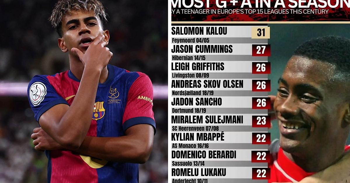 Ярче Ямаля сияло много талантов. Вот лучшие сезоны молодых игроков по гол+пас