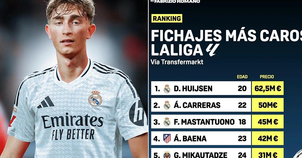Первым стал Дин Хейсен — €62,5 млн. Следом Альваро Каррерас — €50 млн. Замыкает тройку Франко Мастантуа — €45 млн.