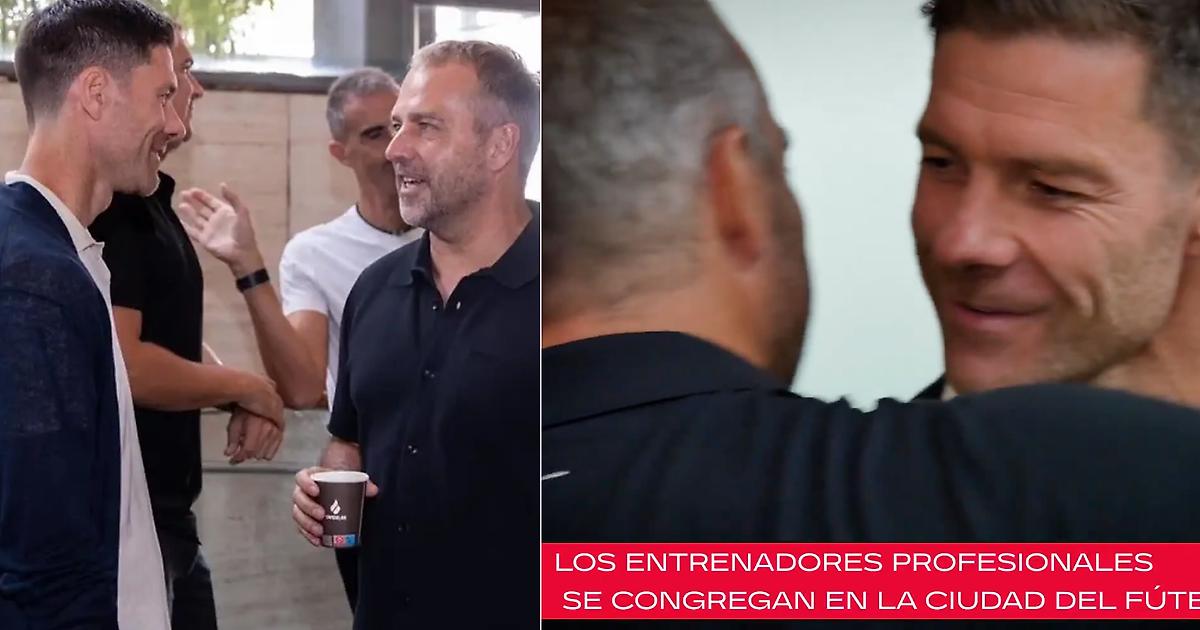 В совместном фото всех 20 тренеров Ла Лиги Флик и Алонсо оказались рядом — и, возможно, уже обменялись мыслями о предстоящем класико.