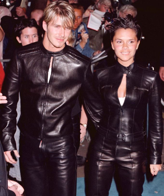Дэвид и Виктория появляются на вечеринке Versace в Лондоне в одинаковых кожаных костюмах, привлекая к себе все взгляды.