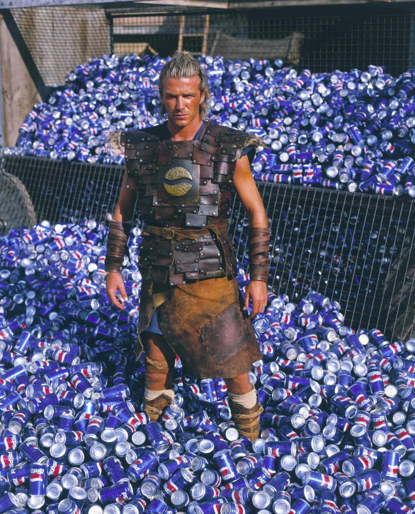 Бекхэм в эффектной кожаной тунике на съёмках знаменитой рекламы Pepsi с гладиаторами, где вместе с ним снялись Франческо Тотти и Рауль.