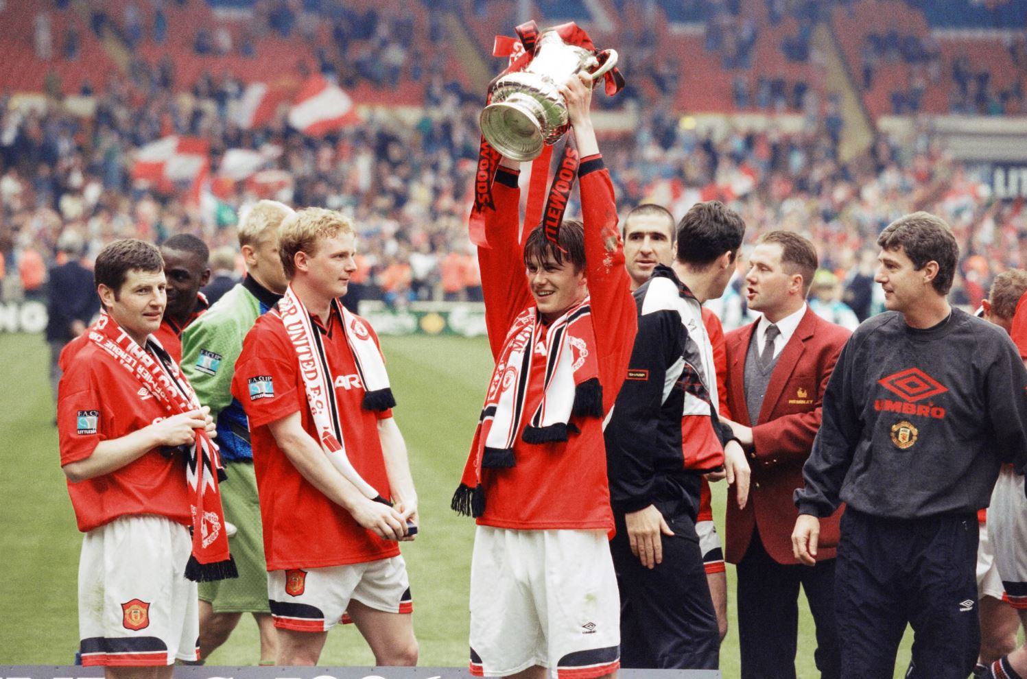 Бекхэм был частью легендарного выпуска «Манчестер Юнайтед» 1992 года — вместе с Ники Баттом, Райаном Гиггзом, братьями Гари и Филом Невиллами и Полом Скоулзом. На этих молодых игроков Алекс Фергюсон делал особую ставку, и их часто называли «птенцами Фергюсона». О самом Фергюсоне написано множество книг — о его характере, отношениях с командой и внутреннем мире, но до появления отношений с Викторией всё казалось довольно просто: он радовался победам и злился после поражений. Впрочем, поводов для радости было немало — например, победа в финале Кубка Англии 1996 года над «Ливерпулем».