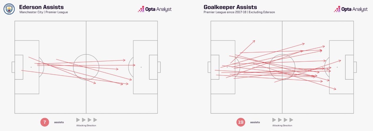 Это были не просто бесцельные выносы вперёд в надежде, что партнёр добежит. Это были мощные, часто низкие по траектории передачи, рассчитанные на очень конкретную цель. С большей регулярностью, чем любой другой вратарь в истории Премьер-лиги, Эдерсон создавал голевые моменты для своих партнёров.