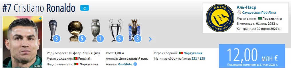 Такие новости всегда приятно читать. Когда игрок твоей команды оказывается в одной строке с Роналду — пусть даже только по стоимости — это маленький повод для гордости.