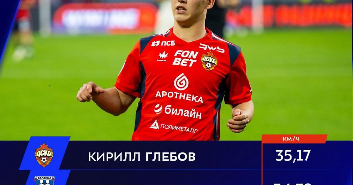 19-летний полузащитник московского ЦСКА Кирилл Глебов развил наивысшую скорость в 7-м туре РПЛ.