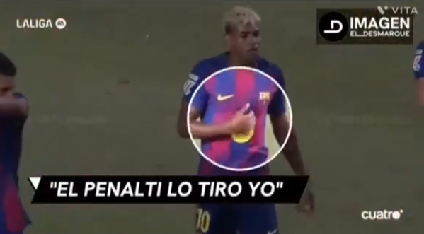 Ламин успешно справился с пенальти – никаких претензий. А вот празднование испанца вызывает сомнения: он сам себя короновал под пристальным взглядом Рафиньи.
