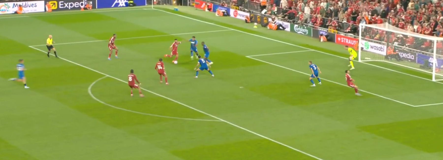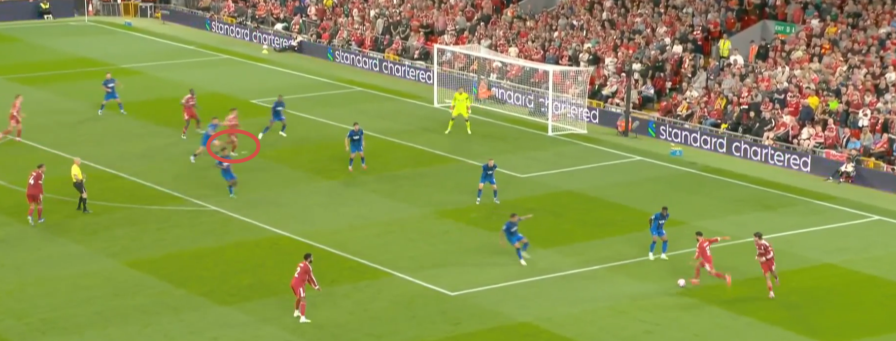 Редкое полезное действие во втором тайме от Соболсаи. Джонс, которого не всегда оправданно критикуют болельщики «Ливерпуля», шикарно доиграл эпизод, создав «помеху» для Петровича. Winterburn и Диаките вдвоем «находят друг друга», но не мяч, а в этот момент Кьеза «удачно прочувствовал эпизод», продемонстрировав «голевое чутье». При изначальном численном превосходстве в своей штрафной, с учетом того, что передача у Салаха при открытом мяче не получалась.
