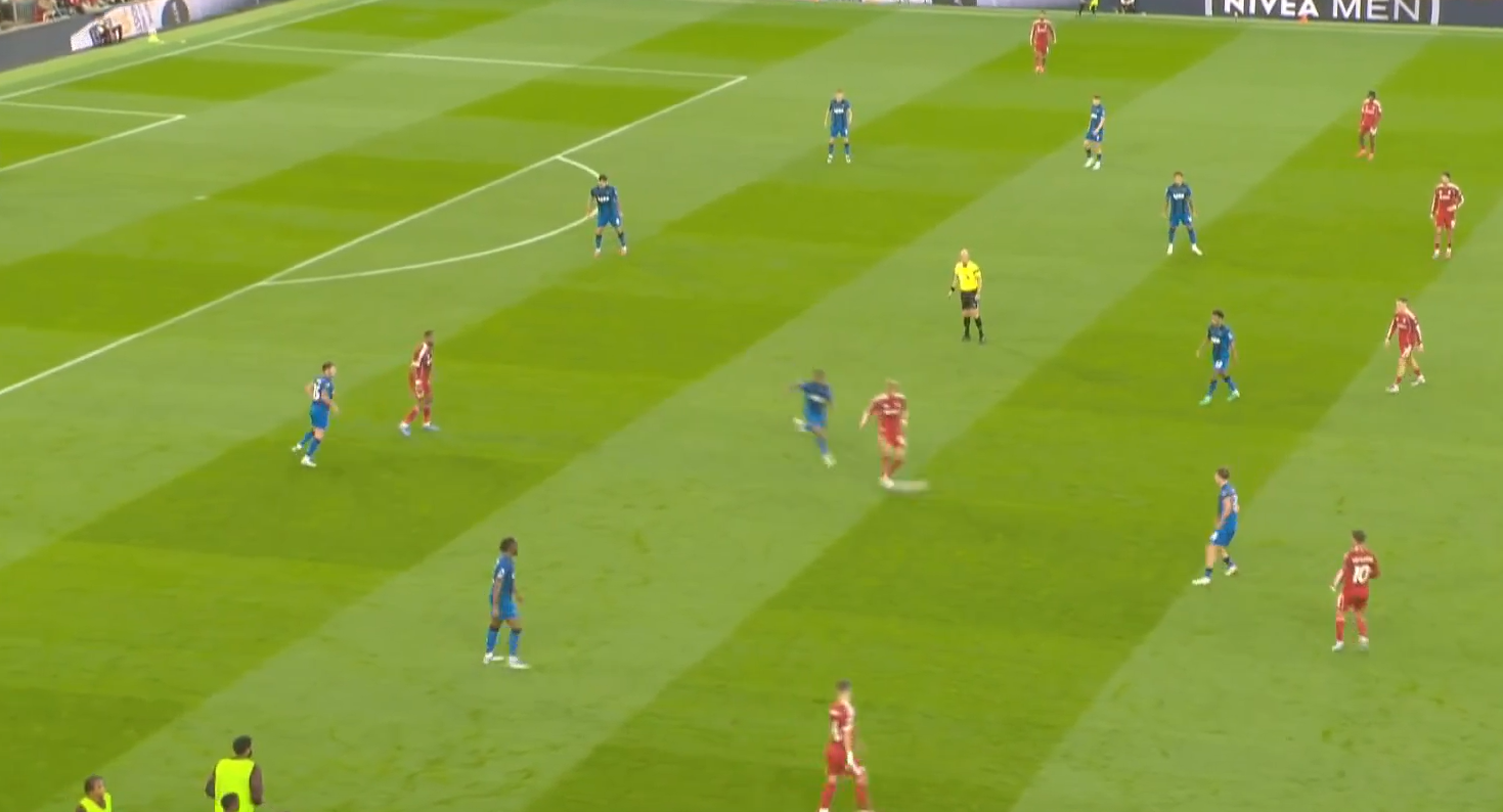 В данном эпизоде Экитике, если еще не оправдывает отданные за него 90 млн, то как минимум 60 точно заслужил. Вышел на длинный пас, выиграв первое касание у Сенеси, выиграл у него рывок в пространство, получил обратный пас и, если бы отдал передачу на Салаха, то цены бы ему не было.