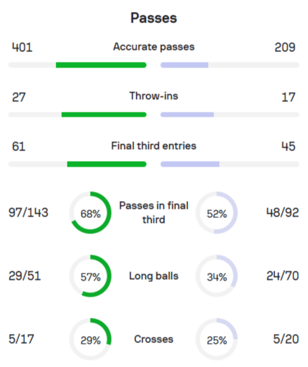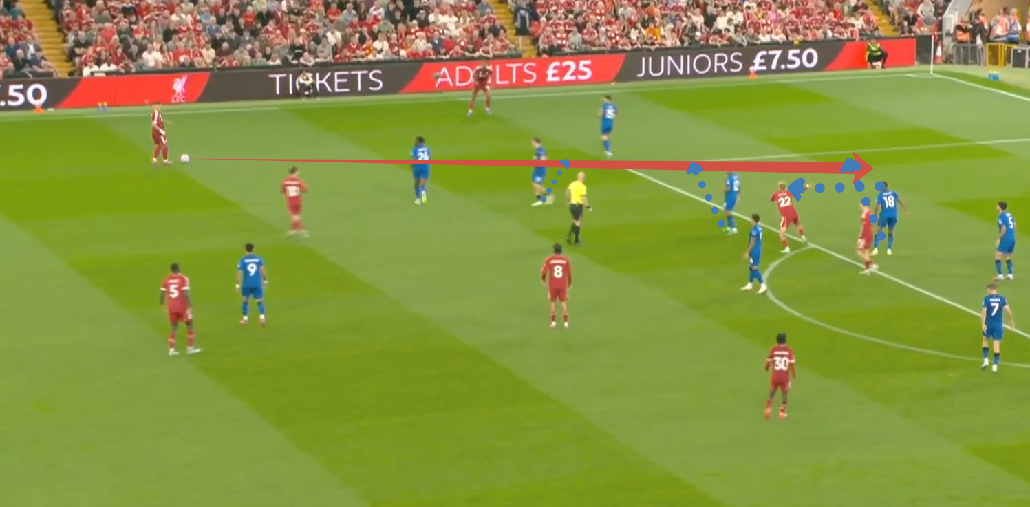 Треть передач команды – длинные, при этом их конвертация оставляет желать лучшего. Если передачи в направлении Семеньо были оправданы разменом игрока «Борнмута» на Керкеша, то забросы в направлении Эванилсона в борьбу с Ван Дайком – идея сколь авантюрная, столь безуспешная.