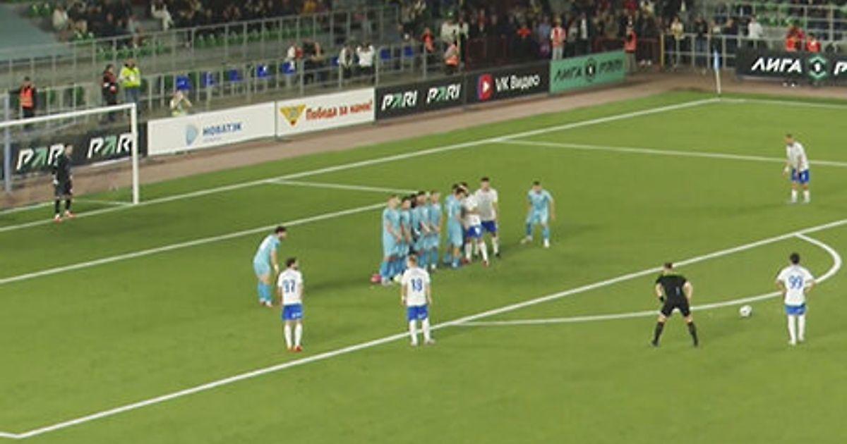 Они с «Челябинском» 90 минут жили без голов, как вдруг Николай Гиоргобиани исполнил. Он мастер таких штрафных, насладитесь!