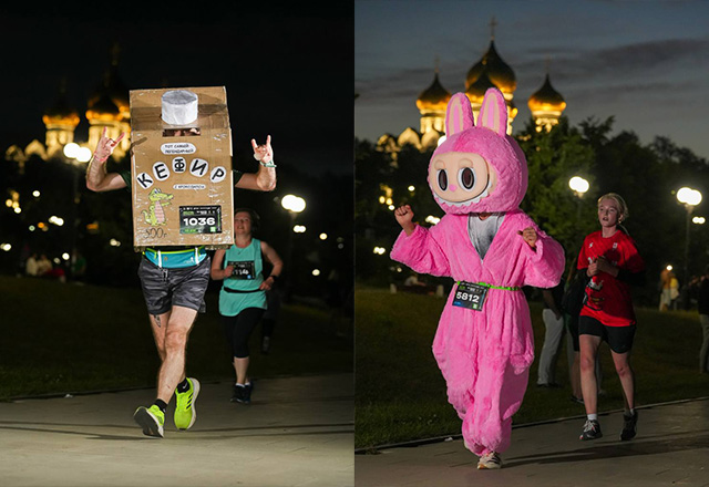 Первый раз бежал в тёмное время суток. Сама идея - кайф. Девчонки в светящихся юбках, ребята в костюмах спайдермена и всё такое. Но есть и минусы. Во-первых, спустя несколько сот метров после старта дорога сужается, места архи мало, если ты бежишь в толпе. Ускориться очень проблематично, придётся бежать в темпе потока и ждать расширения пути. Во-вторых, на четвёртом километре бега стали обгонять быстрые ребята с десятикилометрового забега. Некоторые толкаются, бесятся, что им нет места и приходится тормозить. Соответственно, бесятся и те, кого обгоняют и толкают. Можно понять как тех, так и других. Тут вопрос к организаторам.