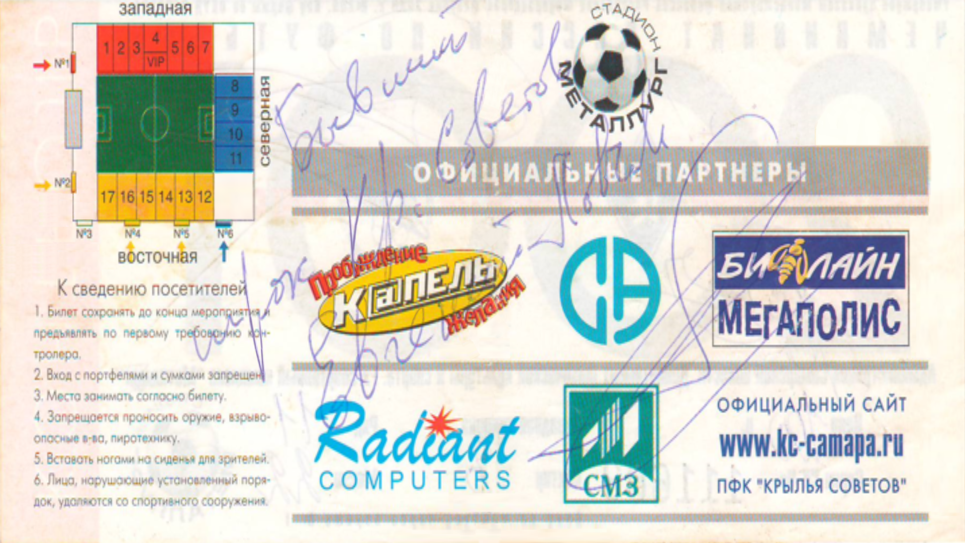 20 лет спустя Евгений с гордостью написал болельщику на билете.