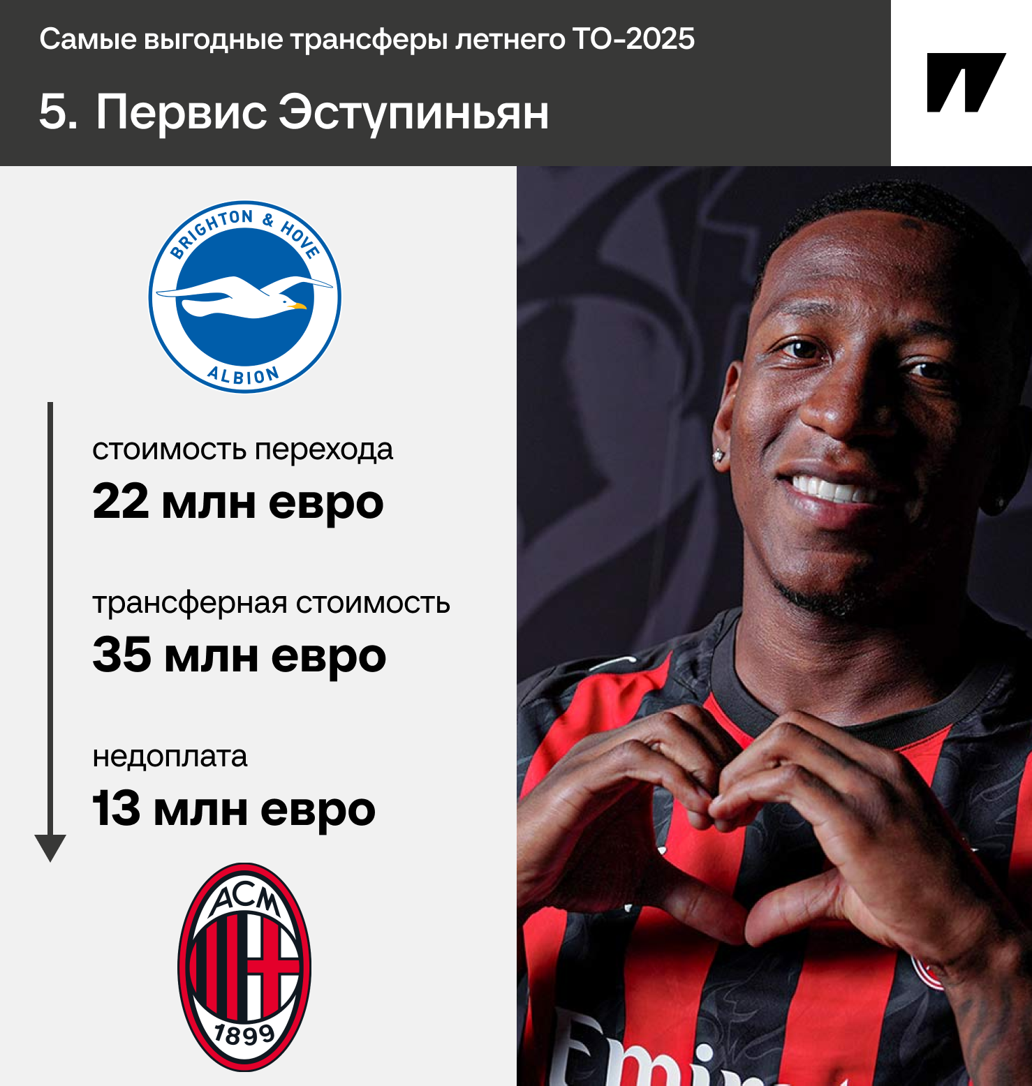 Также не будем учитывать трансферы, случившиеся сезон или два назад и лишь оформленные этим летом. В эту категорию относится трансфер Эстевао в «Челси», а также аренды с правом выкупа Мохамеда Амуры в «Вольфсбург», Пьера Калулу в «Ювентус» и Николо Ровеллы в «Лацио».