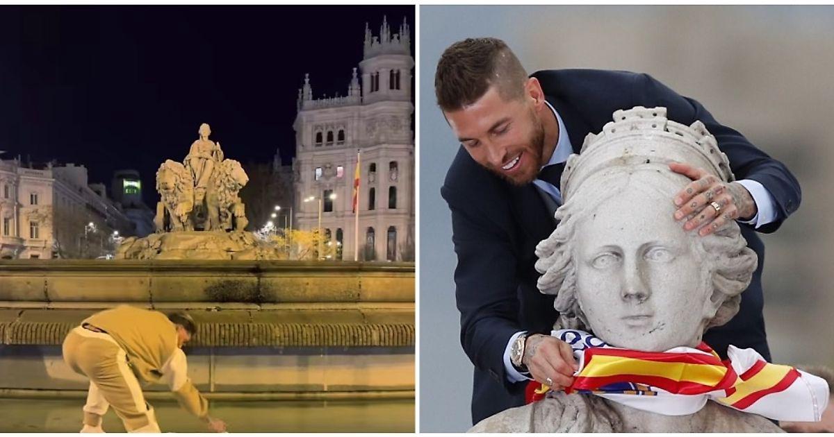 Рамос подписал футболку «Мадрида» со своим именем на спине, подарок защитник оставил, разумеется, у фонтана на площади Сибелес. Подпись на футболке: «Поздравляю с тем, что ты первым прибыл на Сибелес. Привет от капитана. Hala Madrid!»