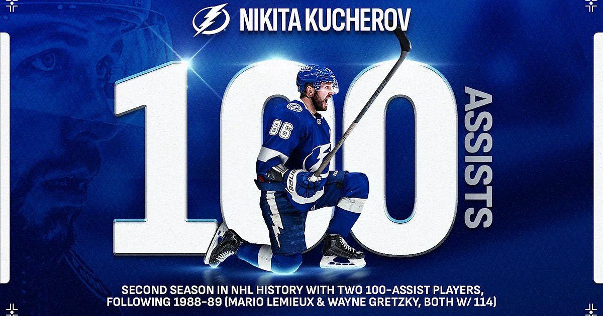11. Только 32 игрока из этого списка набирали 80 и более передач за сезон. Из россиян это делал только Никита Кучеров, став пятым европейцем, которому это удалось.